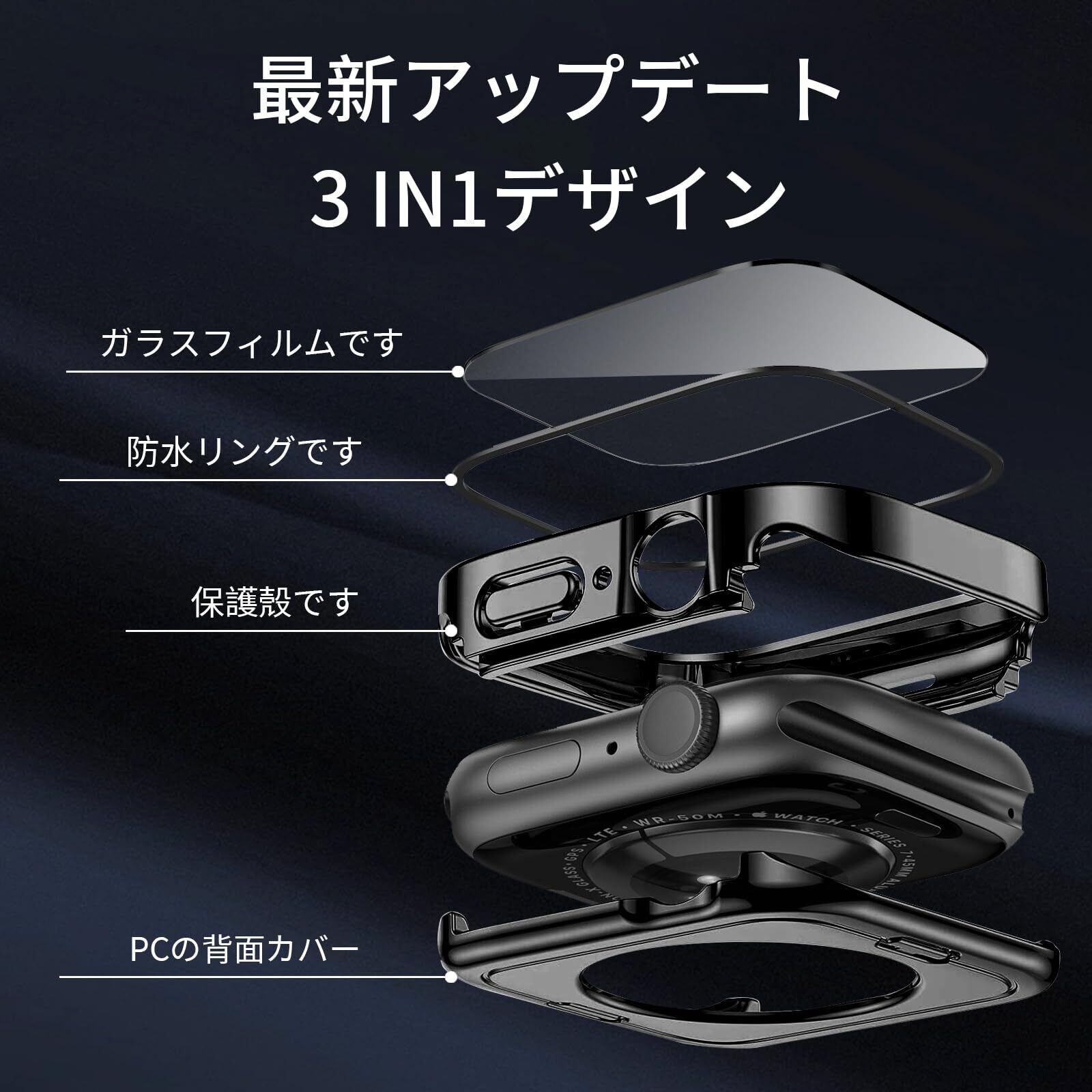 BELIYO 対応 Apple Watch ケース Ultra 2/1 アップルウォッチ カバー 防水ケース ガラスフィルム 一体型 2 in 1 前後の保護 3D直角エッジデザイン メッキ加工 Apple Watch カバー PC素材 軽量 日本旭硝子材 二重構造 アップルウォッチ ケース 全面保護 高耐久 高透過率 装着簡単(49mm,光沢のブラック)