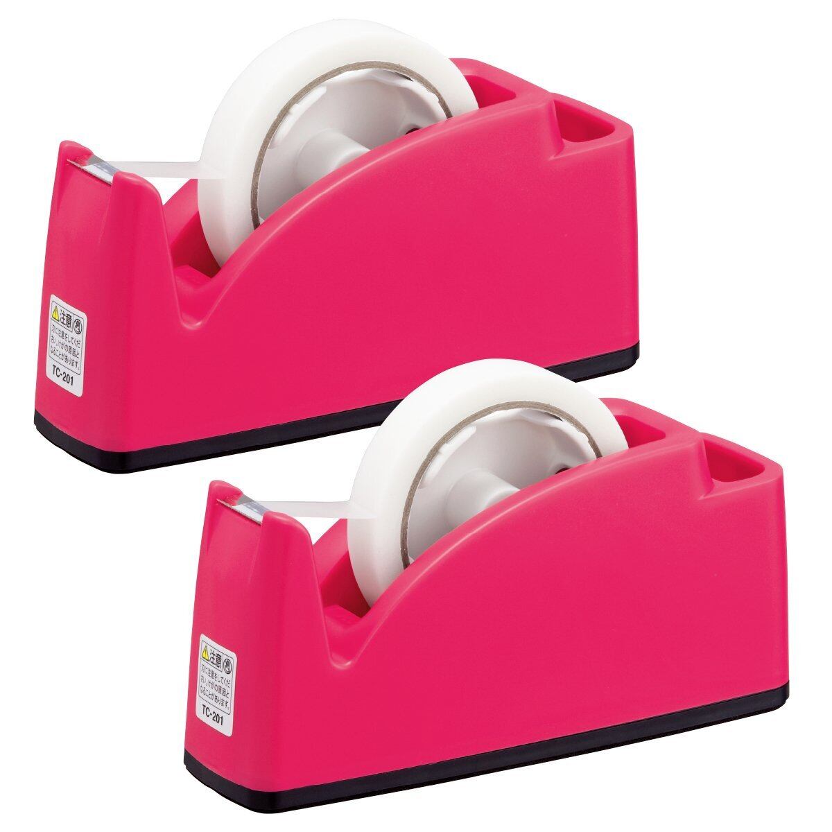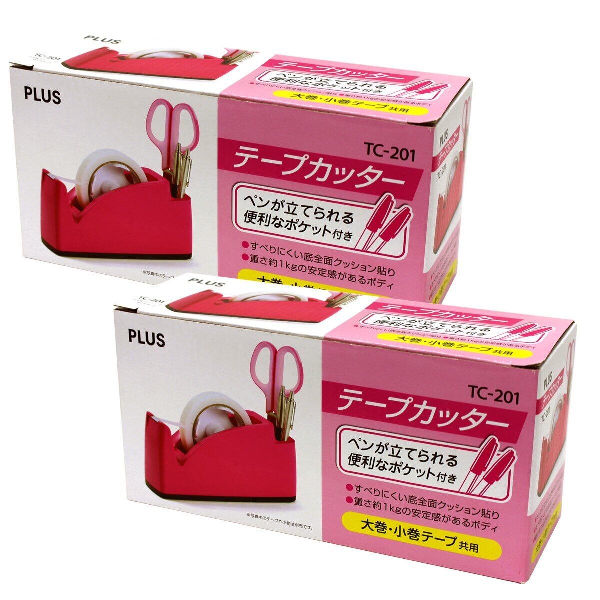 プラス テープカッター ペン立てポケット付き TC-201 ピンク 2個セット 31-241×2