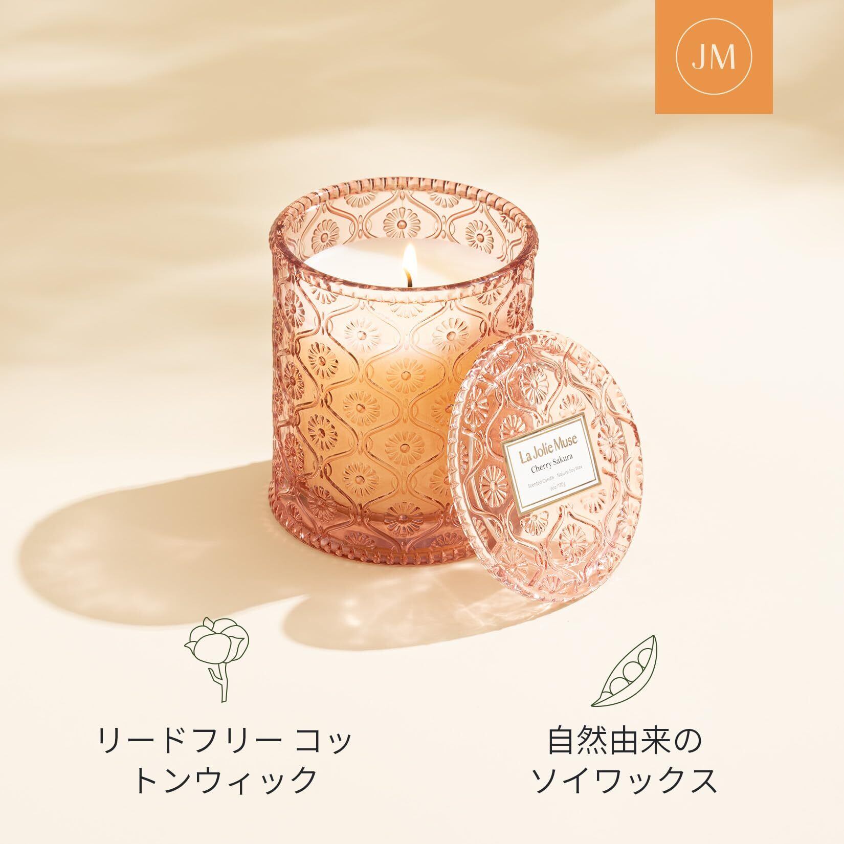 LA JOLIE MUSE アロマキャンドル サクラの香り キャンドル 女性向けアロマ ギフト ナチュラルソイキャンドル ホームフレグランス 170g 燃焼時間40時間