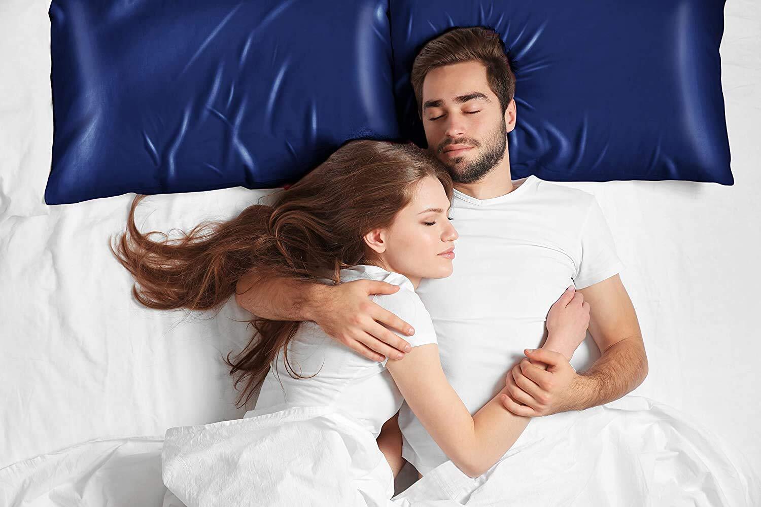枕カバー 2枚セット サテンの枕カバー 封筒式ピローケース 美肌 美髪 両面シルクタイプ 滑らかな材質 静電気防止 (50*70, 青い)