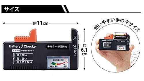 【商品仕様】商品サイズ/ (約)11×6×2.7cm、材質/ABS樹脂、測定できる電池の種類/単1形、単2形、単3形、単4形、単5形、9V角形