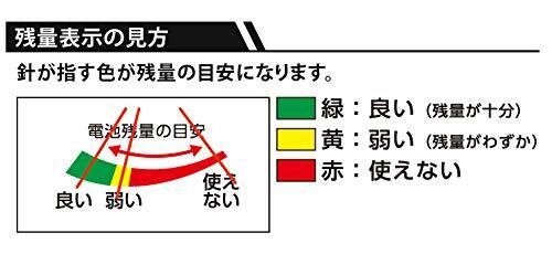 【残量表示の見方】針が指す色が残量の目安になります。●緑:良い(残量が十分)●黄:弱い(残量がわずか)●赤:使えない