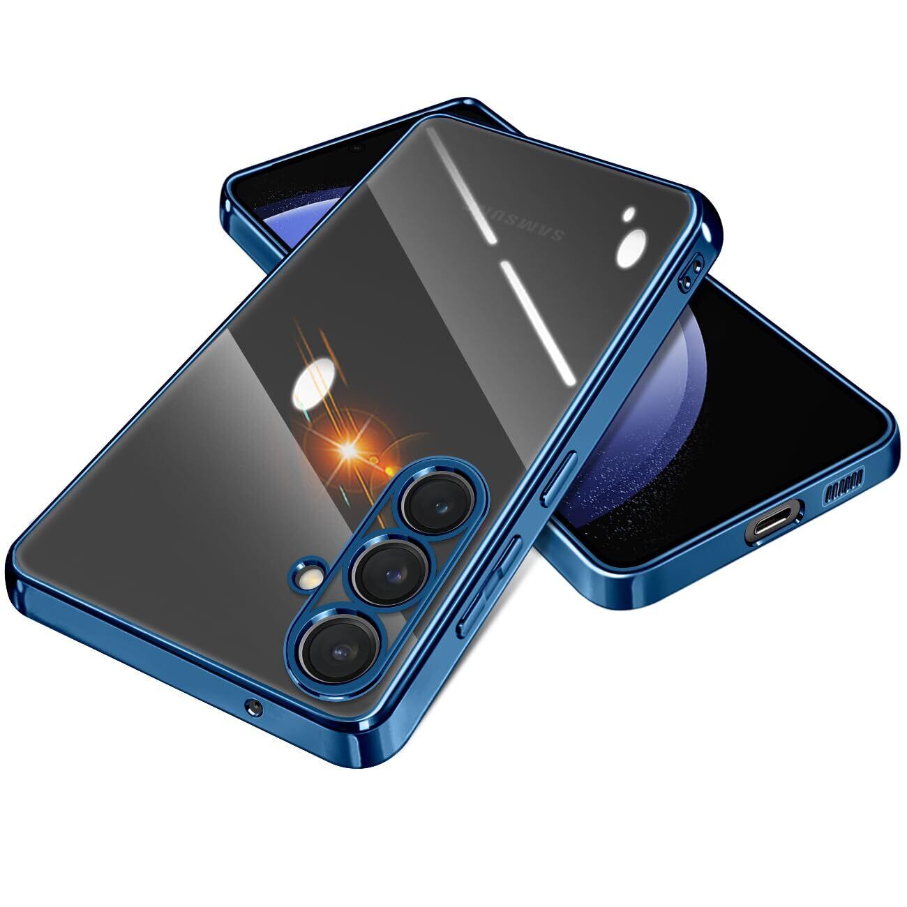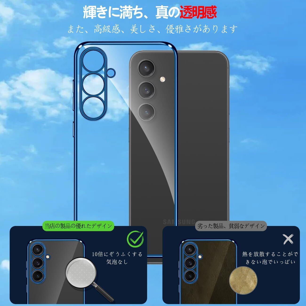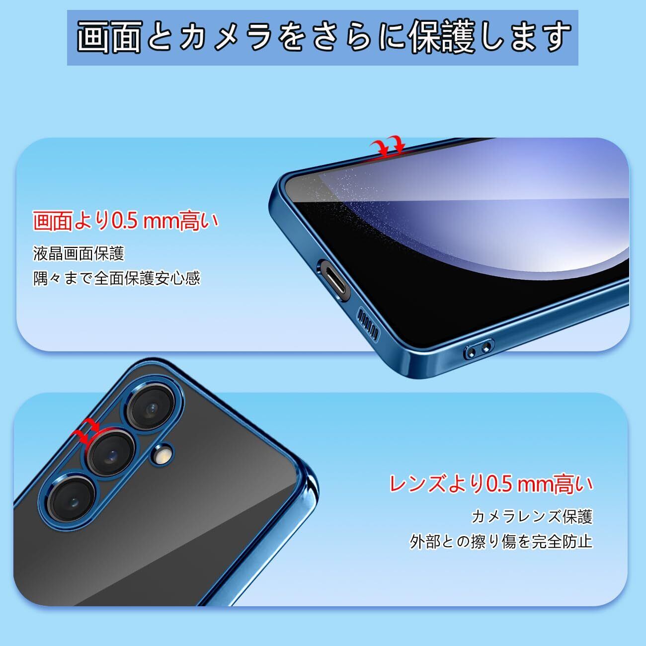 Samsung Galaxy S23FE ケース クリア 耐衝撃 薄型 軽量 SCG24 対応 ギャラクシーS23FE カバー 透明 TPU素材 韓国 ファッション スマホケース 衝撃吸収 メッキ加工 ソフトケース 黄変防止 耐久性 人気 ストラップホール付き サムスン ギャラクシー S23FE 携帯ケース 6.4インチ(ブルー)