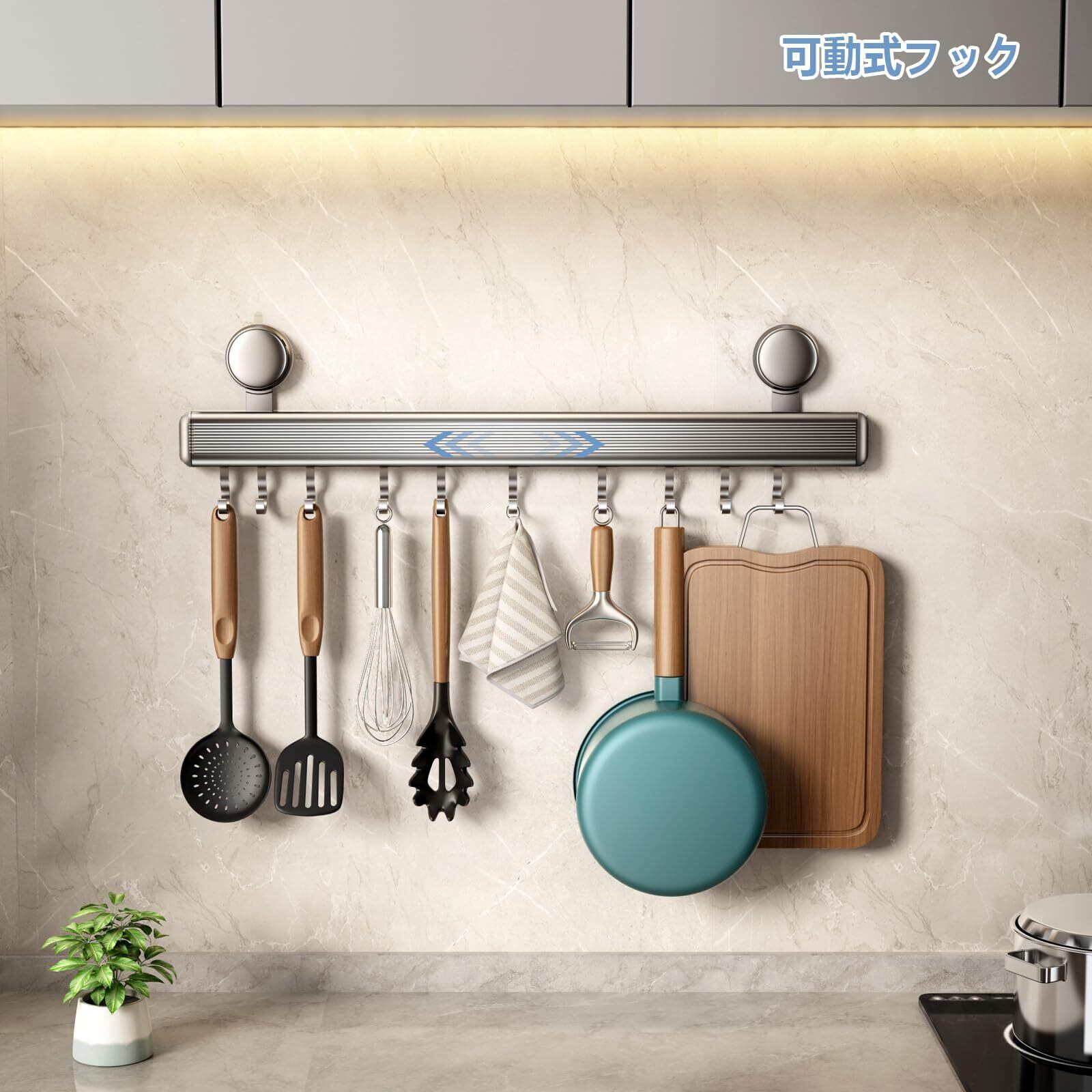 吸盤 フック 粘着吸盤 キッチンツールフック アルミニウム キッチン グレイ 台所用フック 防水防錆 壁掛けフック 強力吸盤 40CM CICUFY