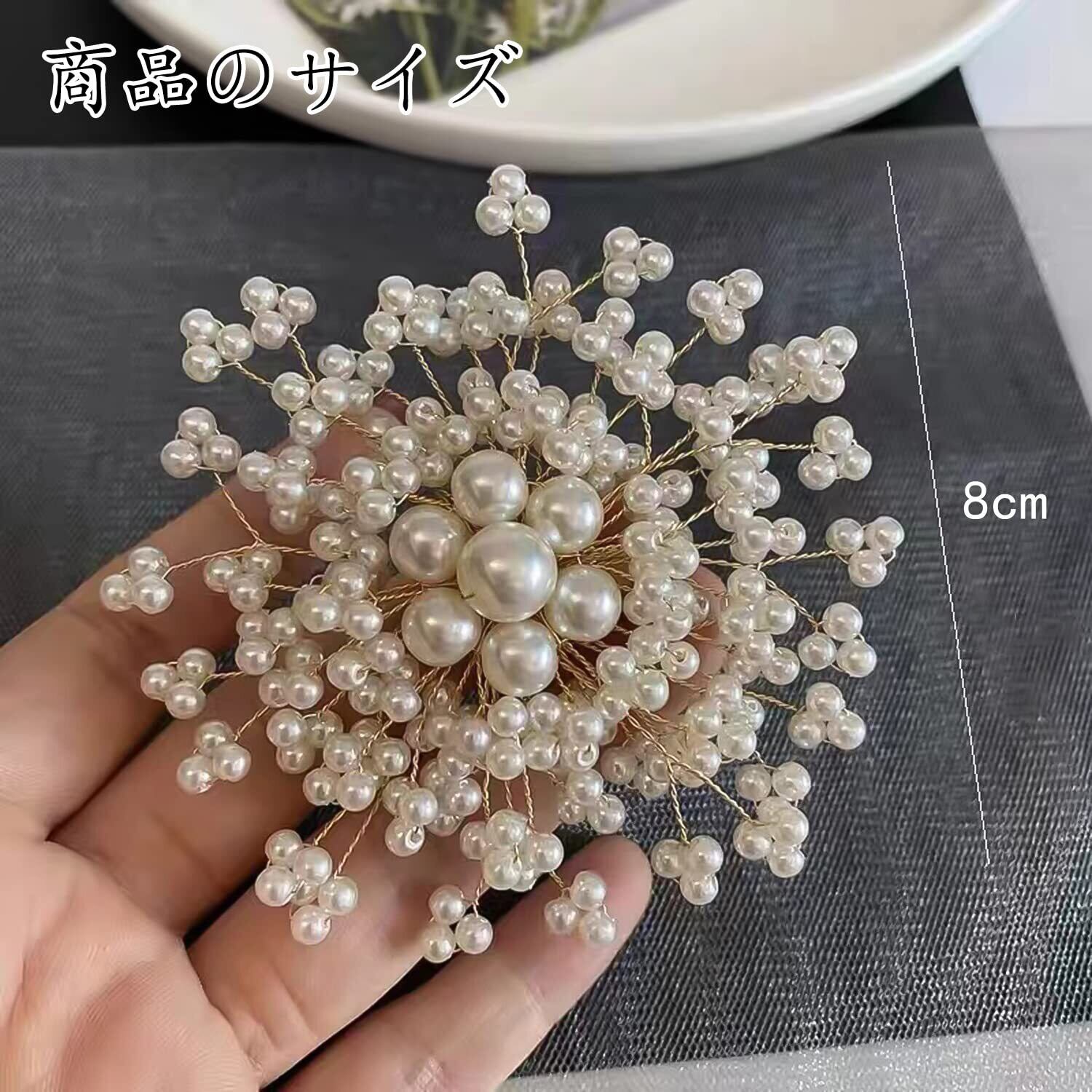 Coollooda コサージュ フォーマル ブローチ パール 卒業 入学 結婚式 レディース セレモニー ママ 入園 大きめ華やか ホワイト 8cm