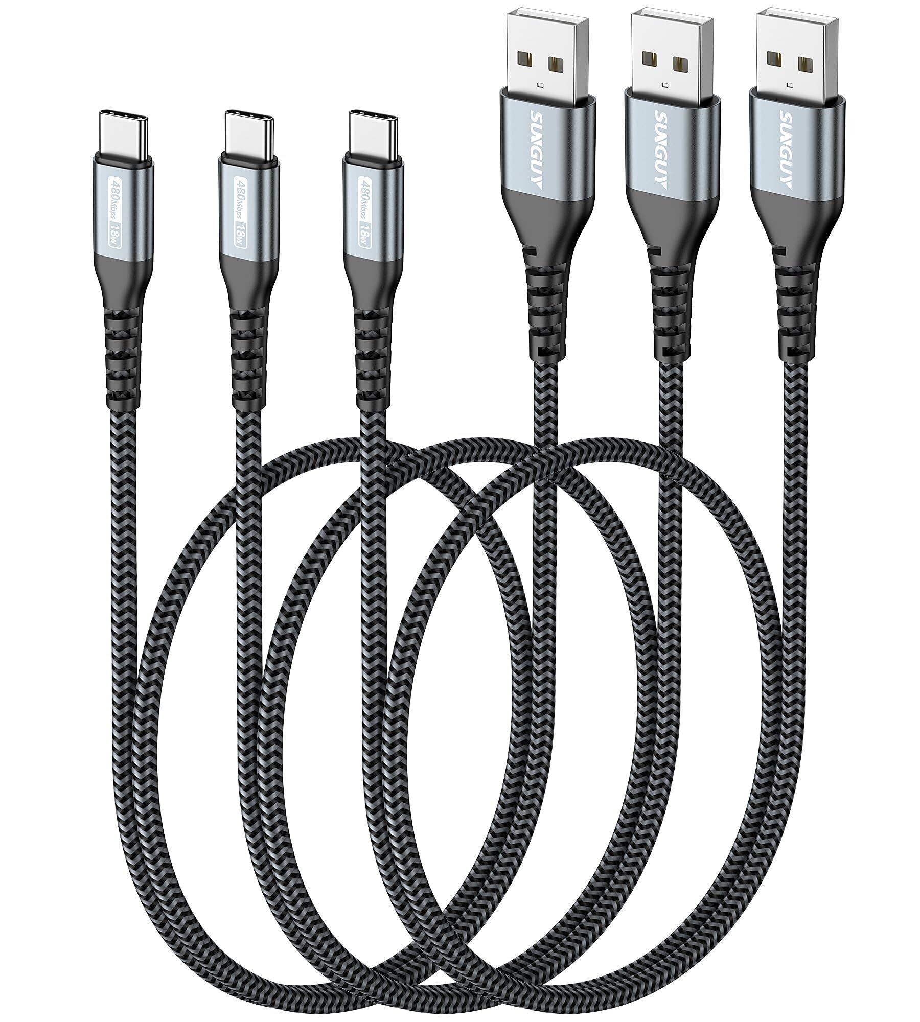 SUNGUY USB C ケーブル 0.5M 【3本セット】 QC3.0最大18W急速充電 タイプc ケーブル 50cm 短い type c ケーブル USB2.0データ転送 ナイロン編み 高耐久性 iPhone16 シリーズ/Galaxy S24 ultra/iPad Pro/iPad air 5 /Xperiaその他USB-C機器対応 グレー