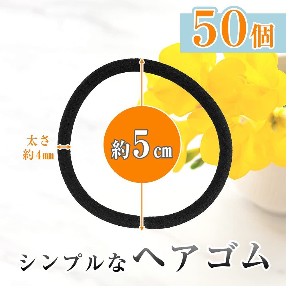 【セット内容】台座付きヘアゴム×50本 【サイズ(約)】台座直径:8mm 【カラー】ゴム:ブラック 台座:シルバー