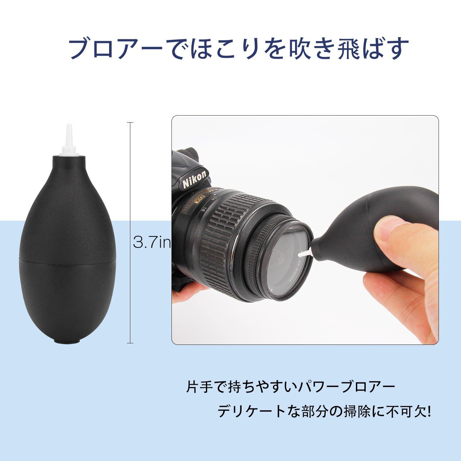 「ホコリを除去」耐久性に優れたブロアーでカメラに付着しているホコリを吹き飛ばします。また、ブラシでホコリと汚れを除去します。