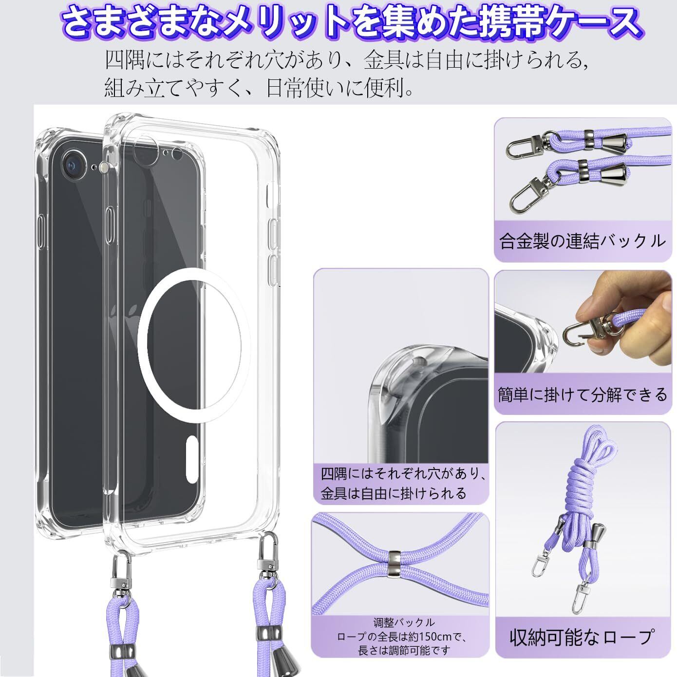 iPhone SE 第3世代 第2世代 用 ケース クリア ショルダー MagSafe対応 アイフォン7/8/se2/se3 スマホケース iphone 8/7 カバー 肩掛け 斜めかけ 縄掛けケース 透明 TPU 携帯ケース 紐付き 織りストラップ付き 長さ調整可能 取り外し可能 紛失防止 落下防止 ワイヤレス充電対応(パープル)