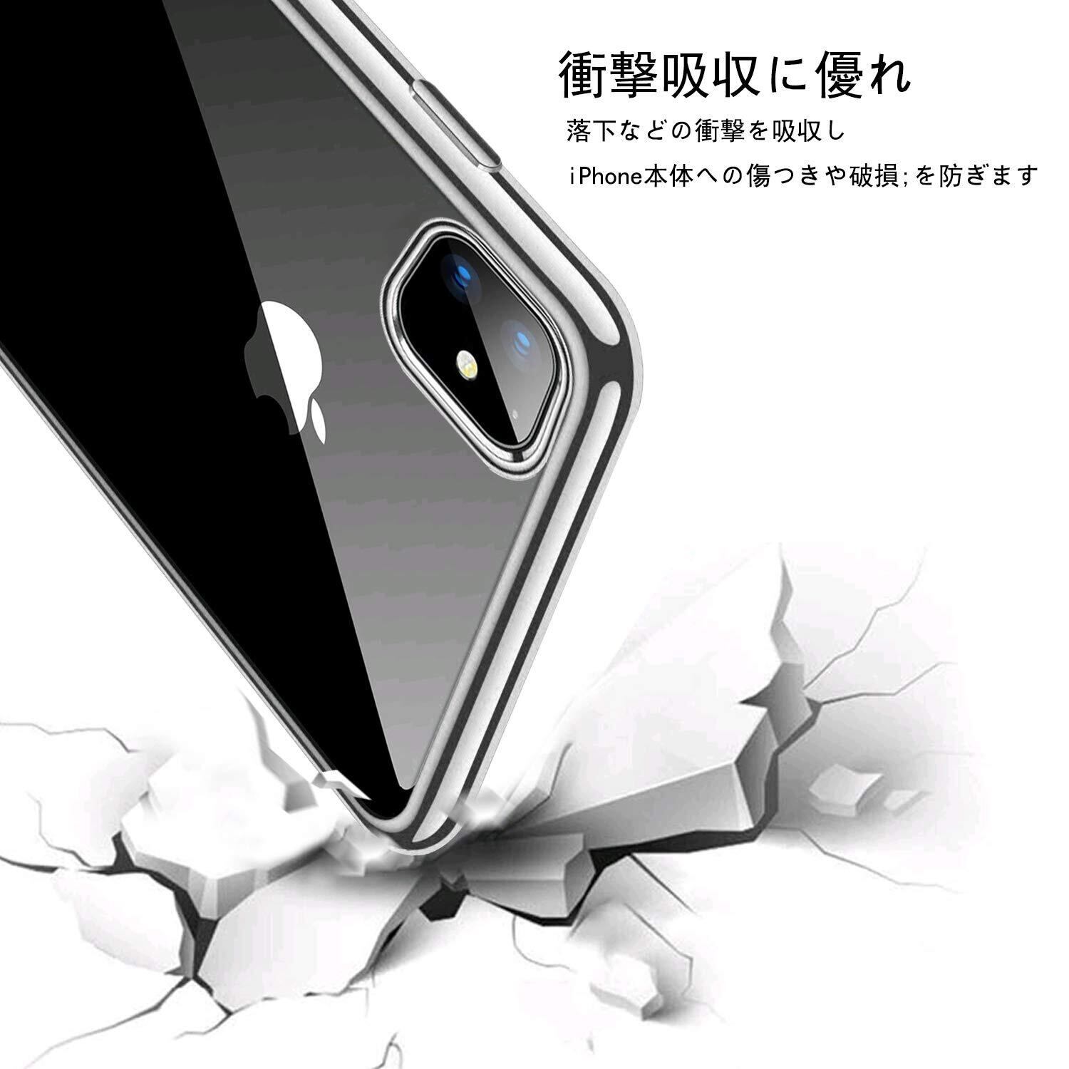 【2022最新】iPhone 11 ケース クリア 透明 tpu シリコン メッキ加工 スリム 薄型 6.1インチ スマホケース 耐衝撃 ストラップホール 黄変防止 一体型 人気 携帯カバー シルバー