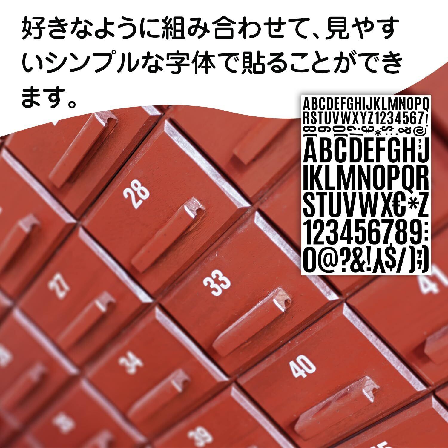 【多用途】手帳など文具への使用はもちろん、DIYのアルファベットブロックや、ナンバリング収納等インテリアへの使用もおすすめです。
