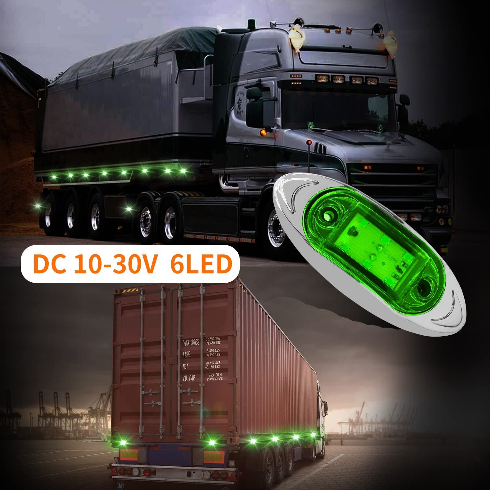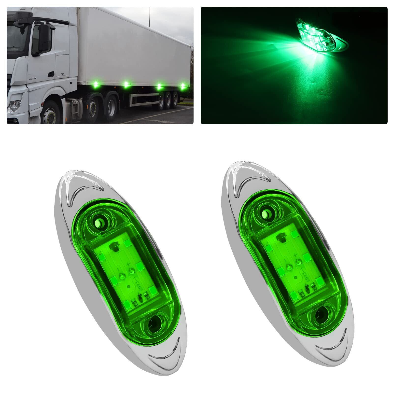 Aoling サイドマーカー LED 12V 24V 緑 トラック用 マーカーランプ RV バス 路肩灯 軽トラ 6LED グリーンレンズ 電気メッキ本体 防水防塵 高輝度 トレーラーマーカー 2個セット