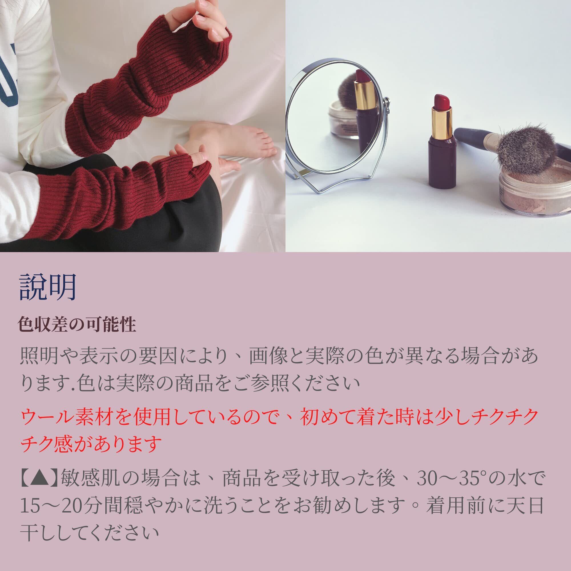 【極暖防寒】32%の羊毛(カシミヤ)が含まれており、保温効果が高く、生地が柔らかい。手につけるとすぐに温まり、チクチクしません。アームウォーマーの長さは35 CMで、肘を覆うほどなので、必要に応じて長さを調節してください。冬の防寒対 策に適しております