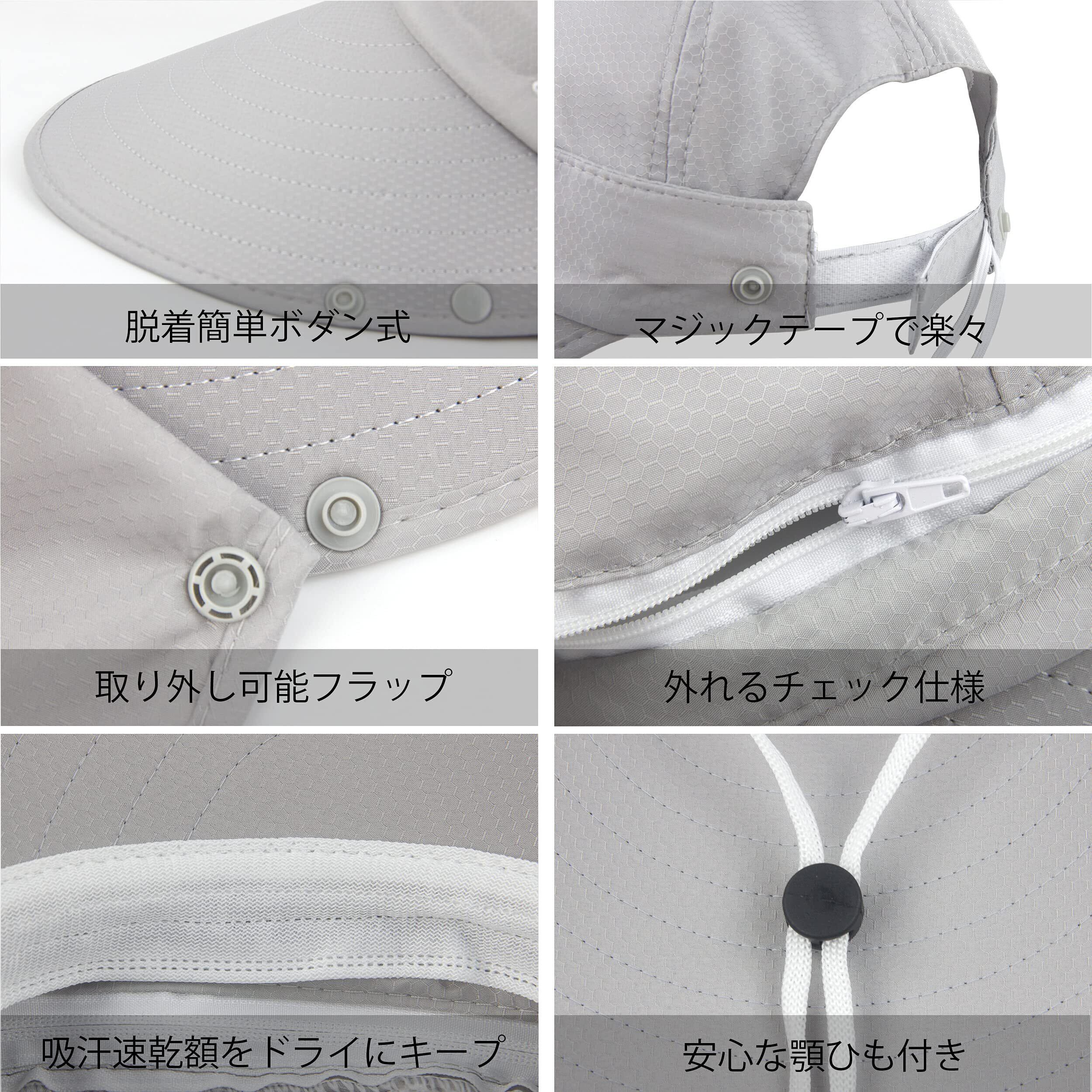 【UPF50+ 日焼け防止◎】 幅14cmの長つばの日除け帽子。取り外せる首用フラップ、通気性の良い顔用フラップ付きで、優れたUVカット効果。有害な紫外線が当たらないように顔、耳、首を保護して、アウトドア活動中にイライラする虫刺されを防止。 360度日焼け防止仕様!優れた機能性、強力なUVカット・保護機能を備えた女性用の日除けフラップ付き帽子。