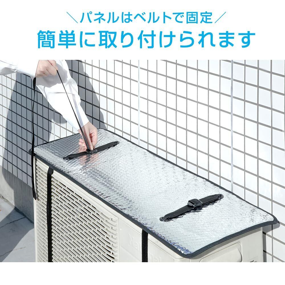 直射日光からガード! 遮熱パネルがエアコン室外機の直射日光を遮り、熱から守ります。エアコン室外機の負担を軽減し、効率をアップ! ベルトで固定し、取り付け簡単です。