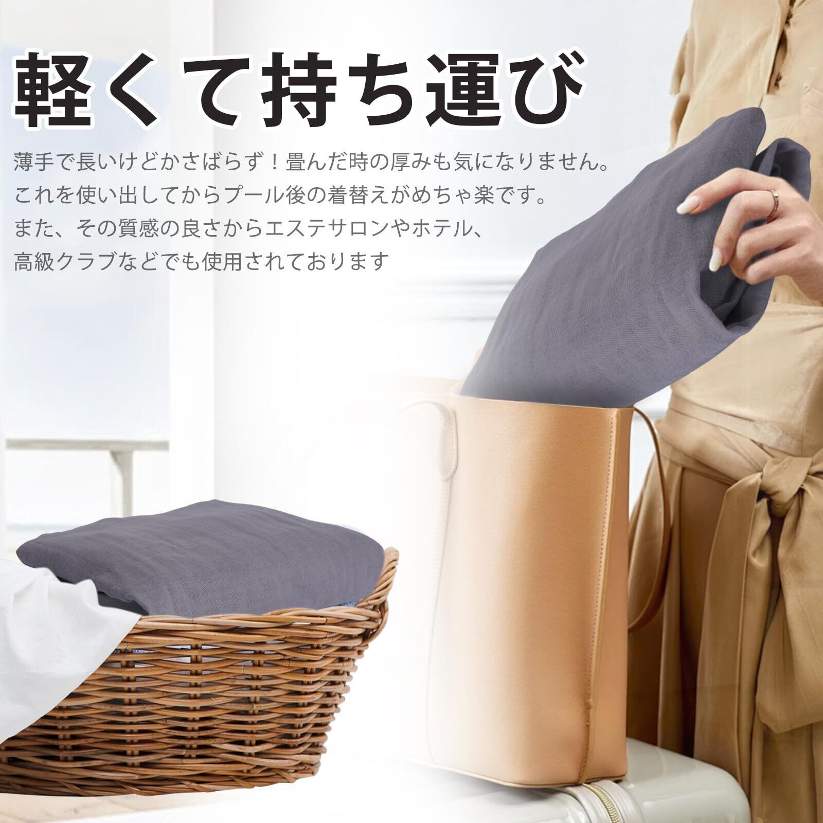 【便利な巻きタオル】季節を問わず、どこでも便利なプール用タオルです。落ち着いた色がトレンドです。スイミングプール、銭湯・温泉、美容院など、「これがあっても恥ずかしくないかもしれない」と思わせるシーンでお使いください。