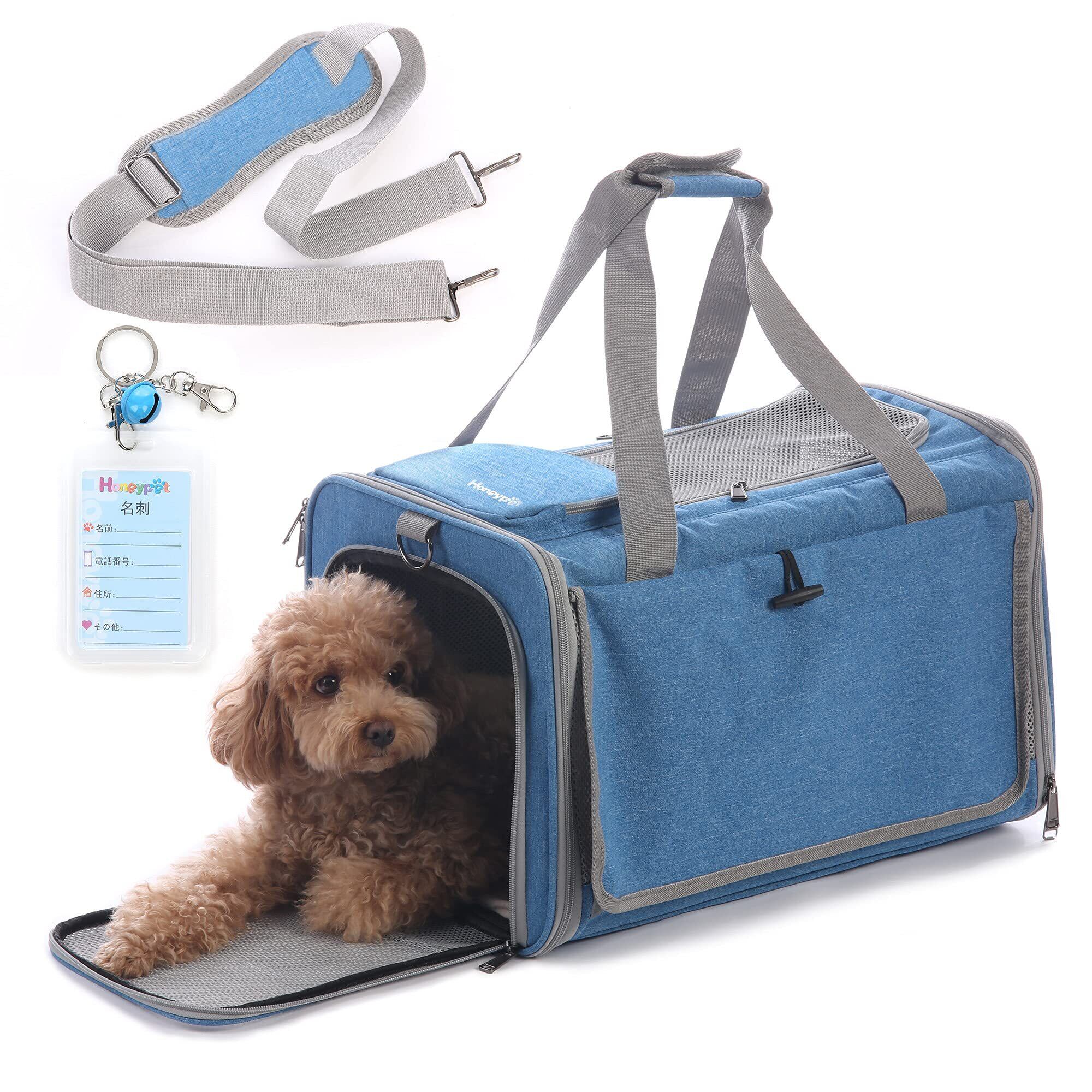 Honeypet 四季通用 ペットキャリーバッグ 折りたたみ 収納4way アウトドア ショルダーバッグ 猫/犬/うさぎ用小屋 8kg耐荷重 通気性、安定性 携帯便利 車載 旅行 キャンピング 通院 散歩 電車移動 災害避難用 外出用 ペットバッグ