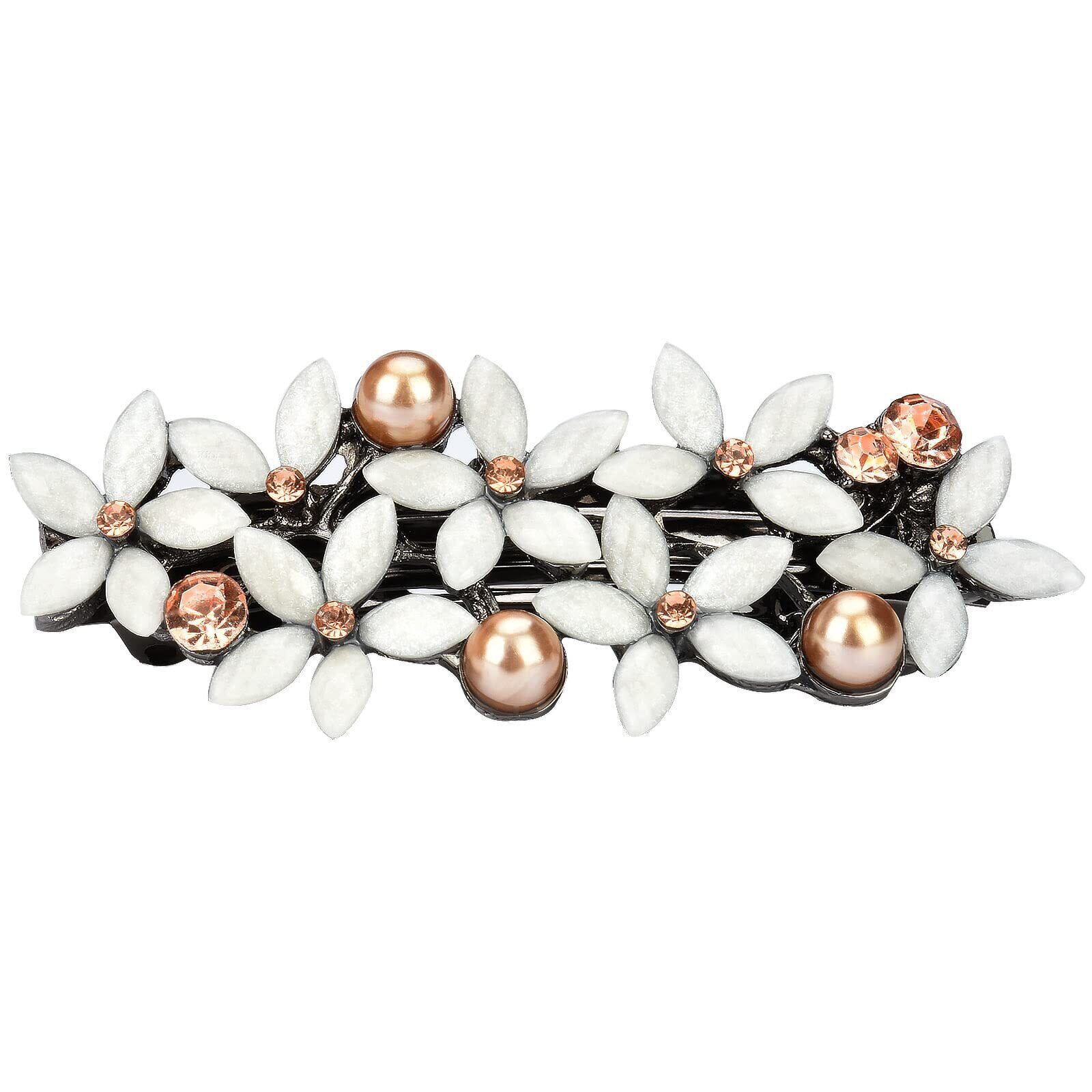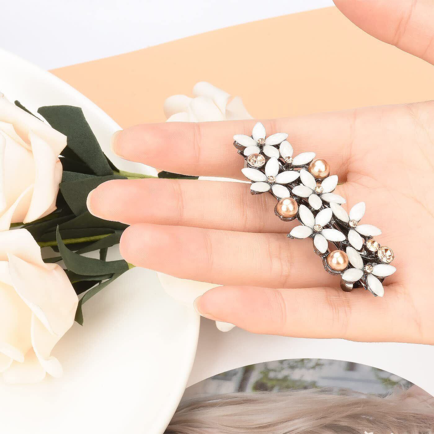 mefeny ヘアクリップ バレッタ パール お花 キラキラ 髪留め 髪飾り ヘアアクセサリー レディース 結婚式 パーティー 入学式 お呼ばれ 卒業式 (白)