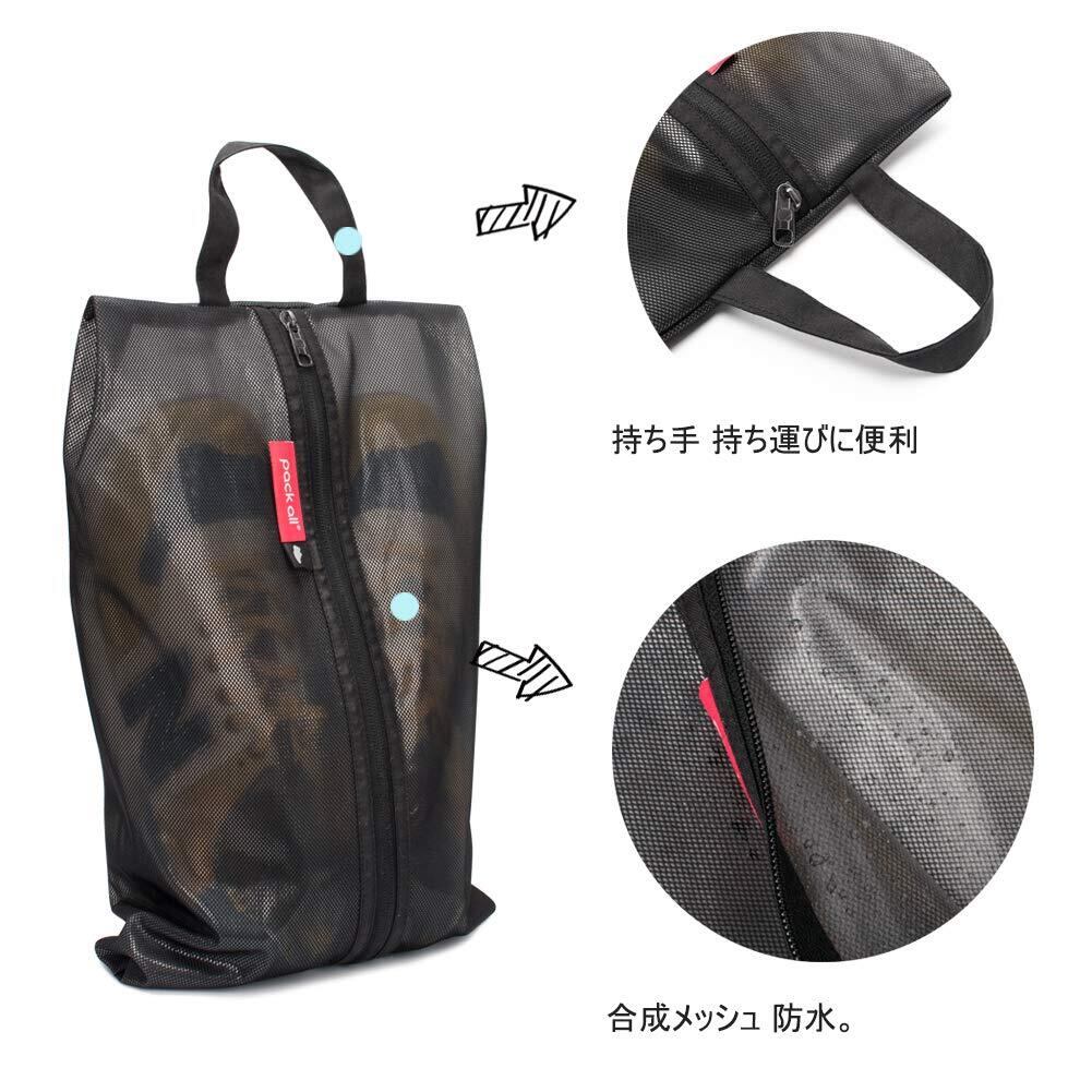 【人気商品】pack all シューズケース 撥水加工 シューズバッグ 軽量 防塵防汚防臭 半透明 シューズ袋 上履き入れ 靴入れ 持ち運び便利 男女兼用 色とサイズ選び可能 旅行 出張 スポーツ 学校 家庭用 ポリエステルとTPU (ブラック、2枚セット)