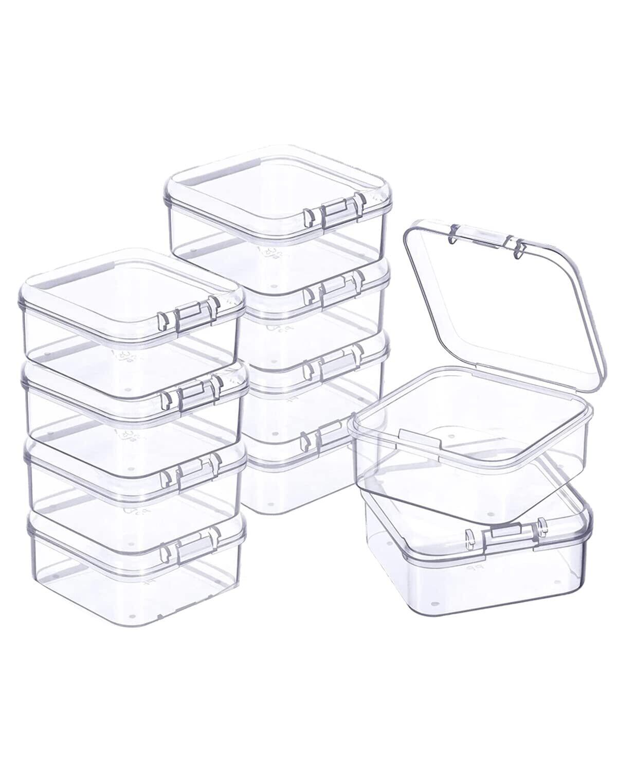 【セット内容】蓋付き小物収納ボックス×10個。サイズ:5.5cm×5.5cm×2cm。小物の整理にお使いいただける、プラスチック製収納ケースです。