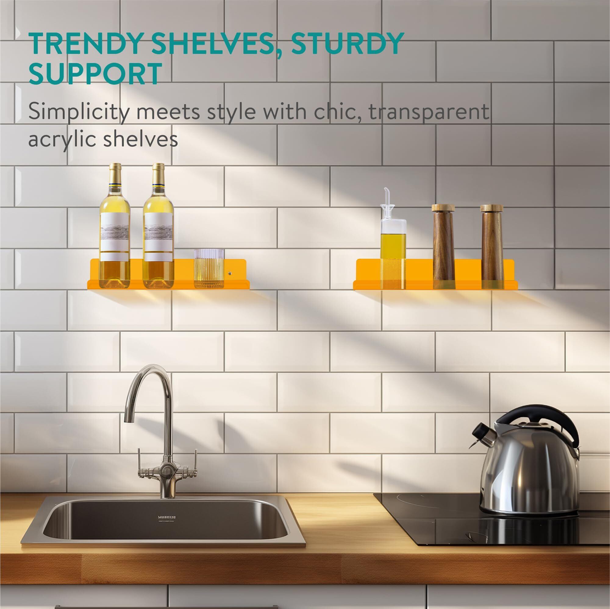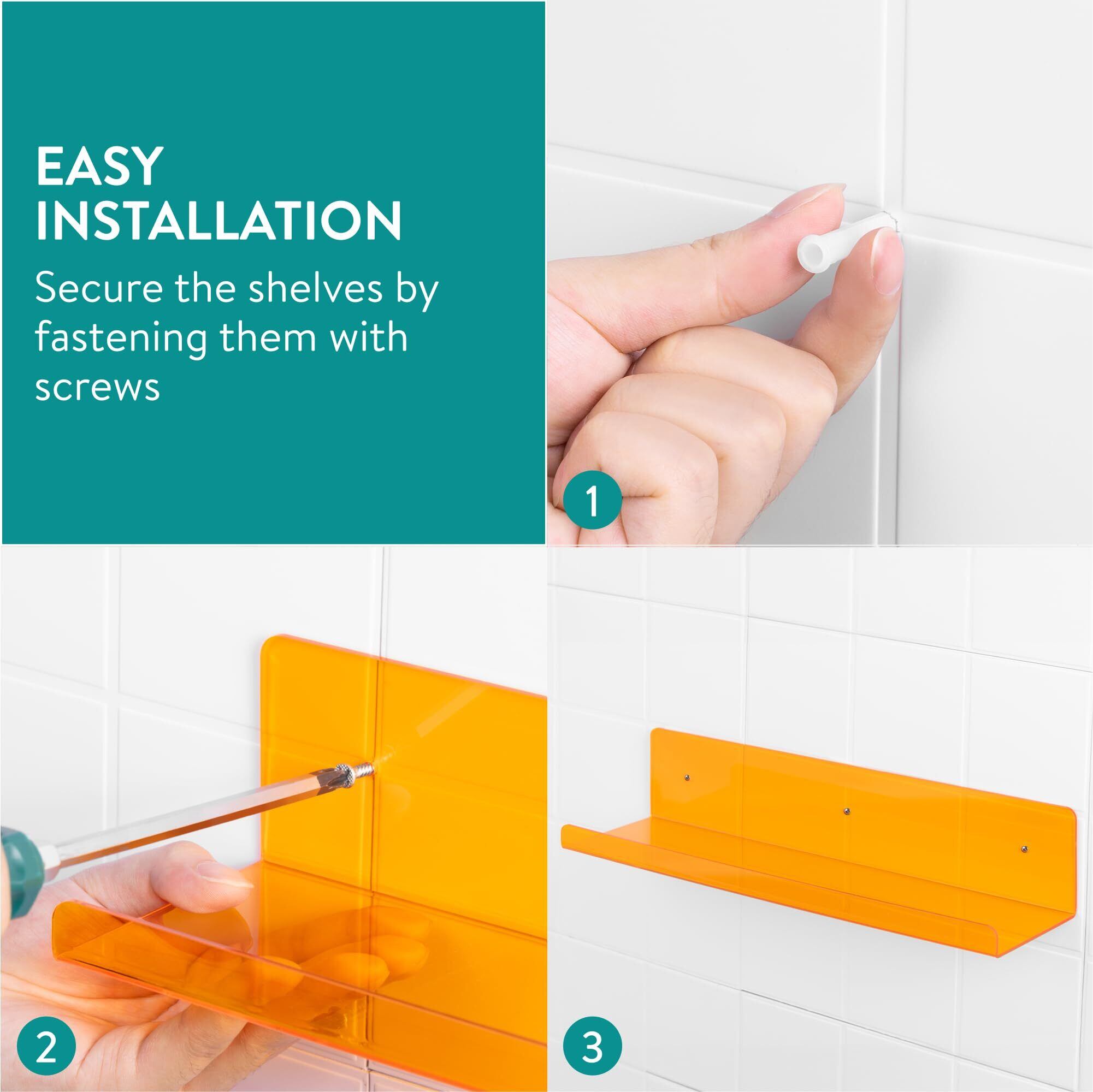Navaris ウォールシェルフ 3個セット 壁掛け棚 オープンシェルフ - 収納棚 オープンラック ウォールラック 壁面収納 - 38x10.2x7.6cm オレンジ アクリル