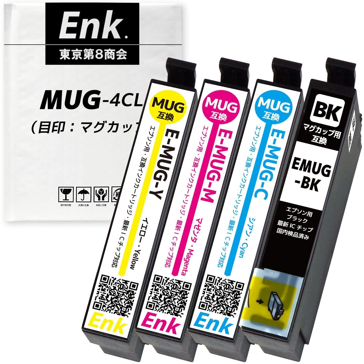 【Enk】製 MUG-4CL エプソン用 互換インク 互換インクカートリッジ 目印: まぐかっぷ 純正と同じ組み合わせPGBK(顔料BK) 残量表示あり 最新ICチップ搭載 国内梱包検品済み QRコード読み取り型説明書導入 MUG (PGBK/C/M/Y) 4色セット / BK顔料】