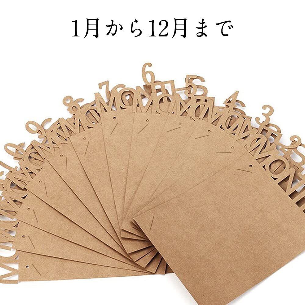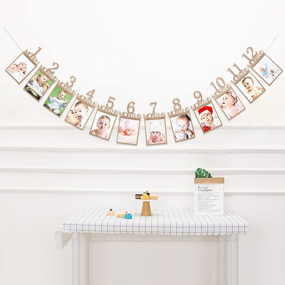誕生日 写真 ガーランド フォトフレーム 飾り付け 1歳 12ヶ月 バースディ パーティー お祝い 装飾 壁掛け 写真フレーム 写真立て 記念日 赤ちゃん 結婚 ひも付き (茶色)