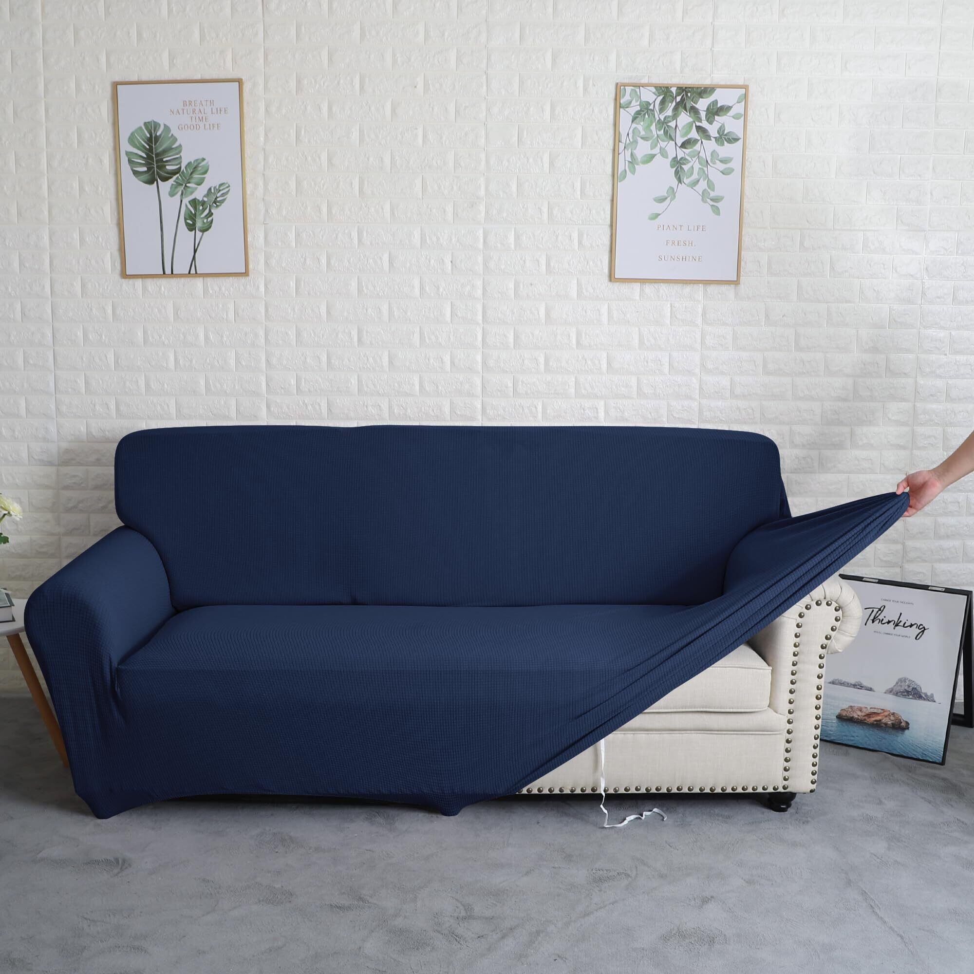 ソファーカバー ストレッチ 肘付き ソファー保護カバー 犬猫傷防止 北欧風 滑り止め 1人掛け 3人掛け 2人掛け マルチカバー 無地 縦横弾力 四季適用 洗える お洒落 犬猫対策 ソファーシーツ (ネイビー, 2人掛け)