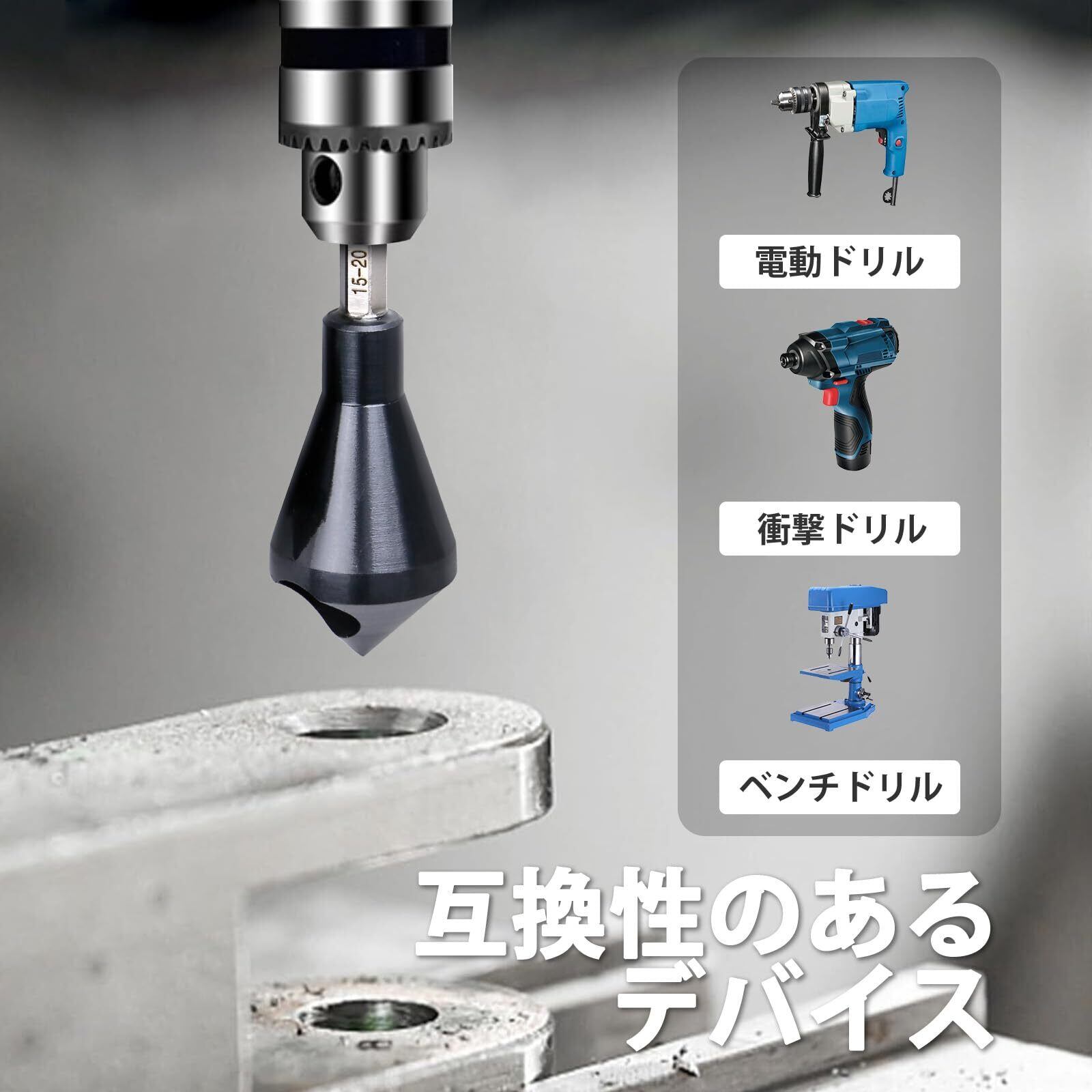 ステンレス、薄板、アルミ、木材、ビニール、樹脂などの面取り、バリ取りに使用できます。また、薄板のリーミング、皿ネジの面取り、真空配管の筐体のバリ取りなどにも使用可能です。