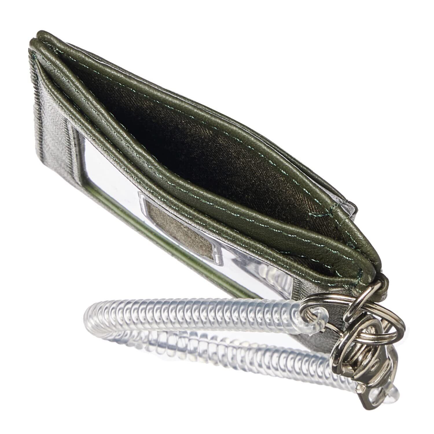 [Pregiudizio] メンズ 軽くて薄い イタリア製 ラム革 単パスケース 定期入れ ランヤード付き (Green)