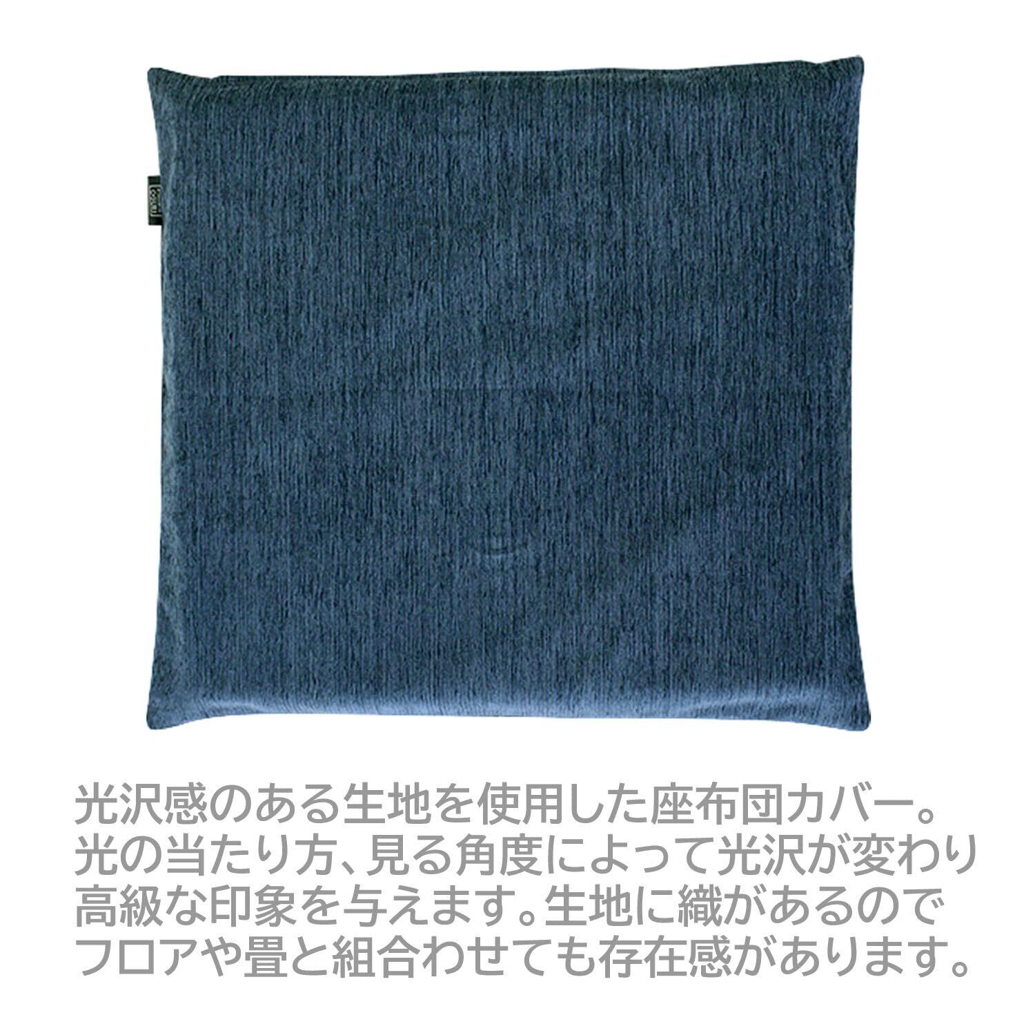メリーナイト 座布団カバー 「ディア」 約55×59cm 銘仙判 ネイビー ファスナー式 光沢感 艶感 コーデュロイ風 模様替え 和洋室 洗える MNS641575-72