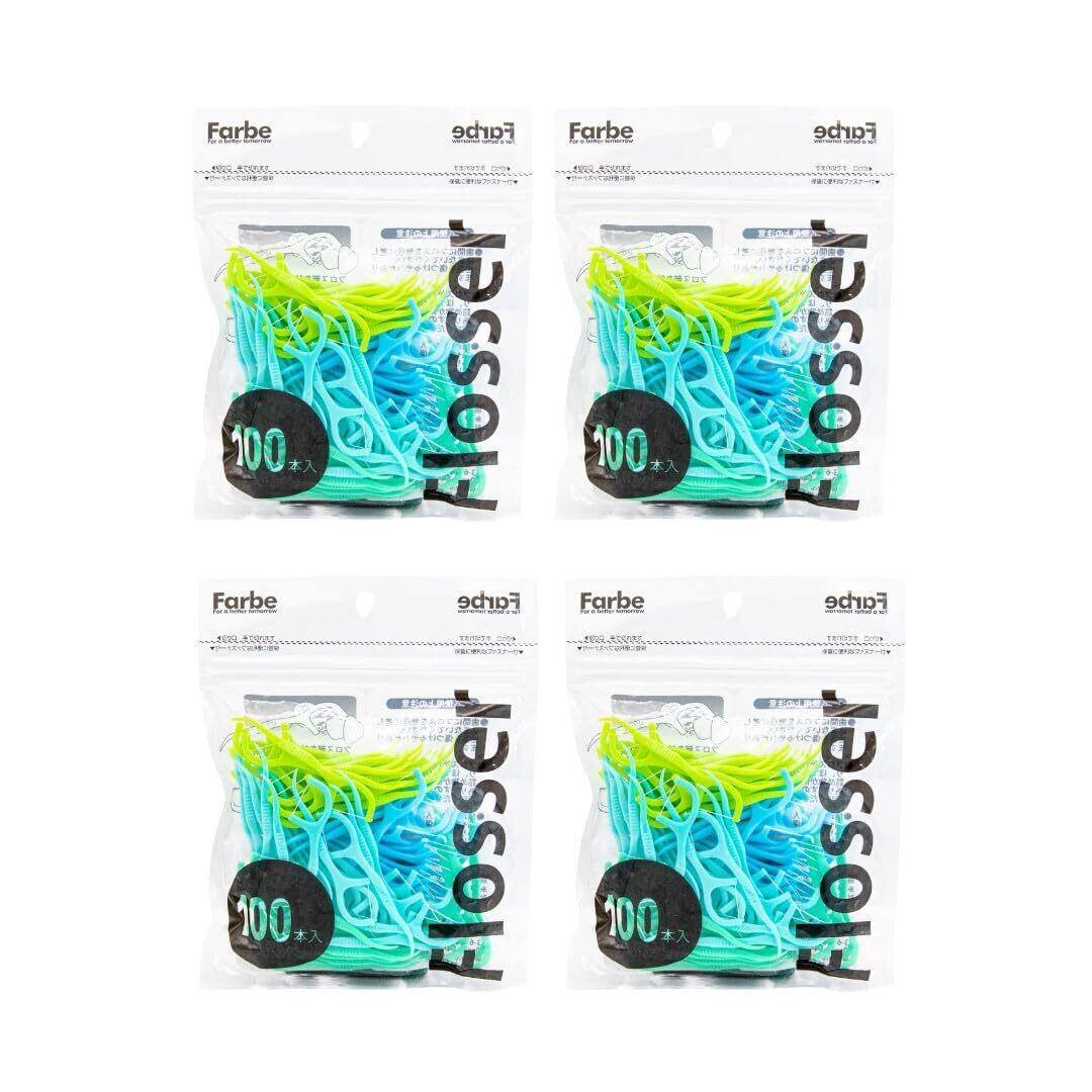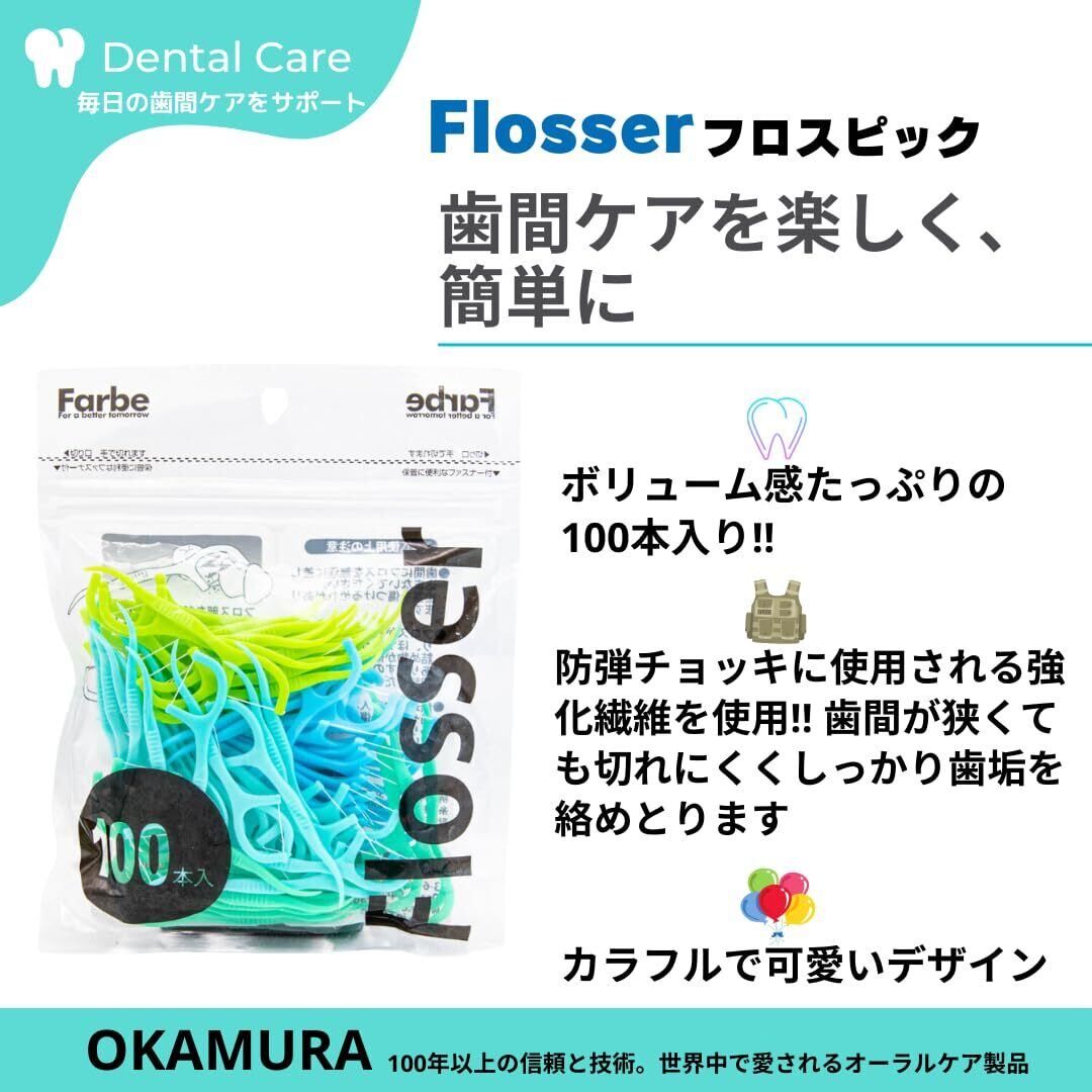 【人気商品】オカムラ デンタルフロス Farbe Flosser ファルベフロッサー ブルー 1袋 100本入【4セット】