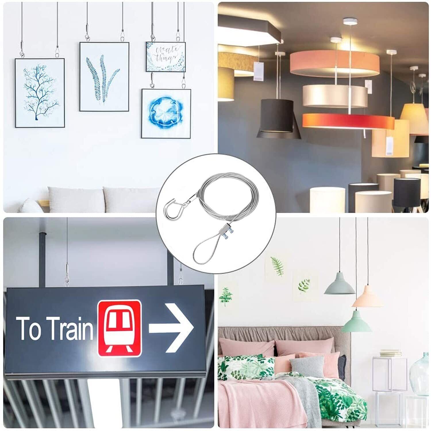 4本セット 落下防止ワイヤー フック付きスリング 調節可能なステンレスワイヤー ピクチャーレール ワイヤー 長さ150cm 直径1.5mm 耐荷重20kg ビルボードスリング サインスリング 固定安全ワイヤー シルバー