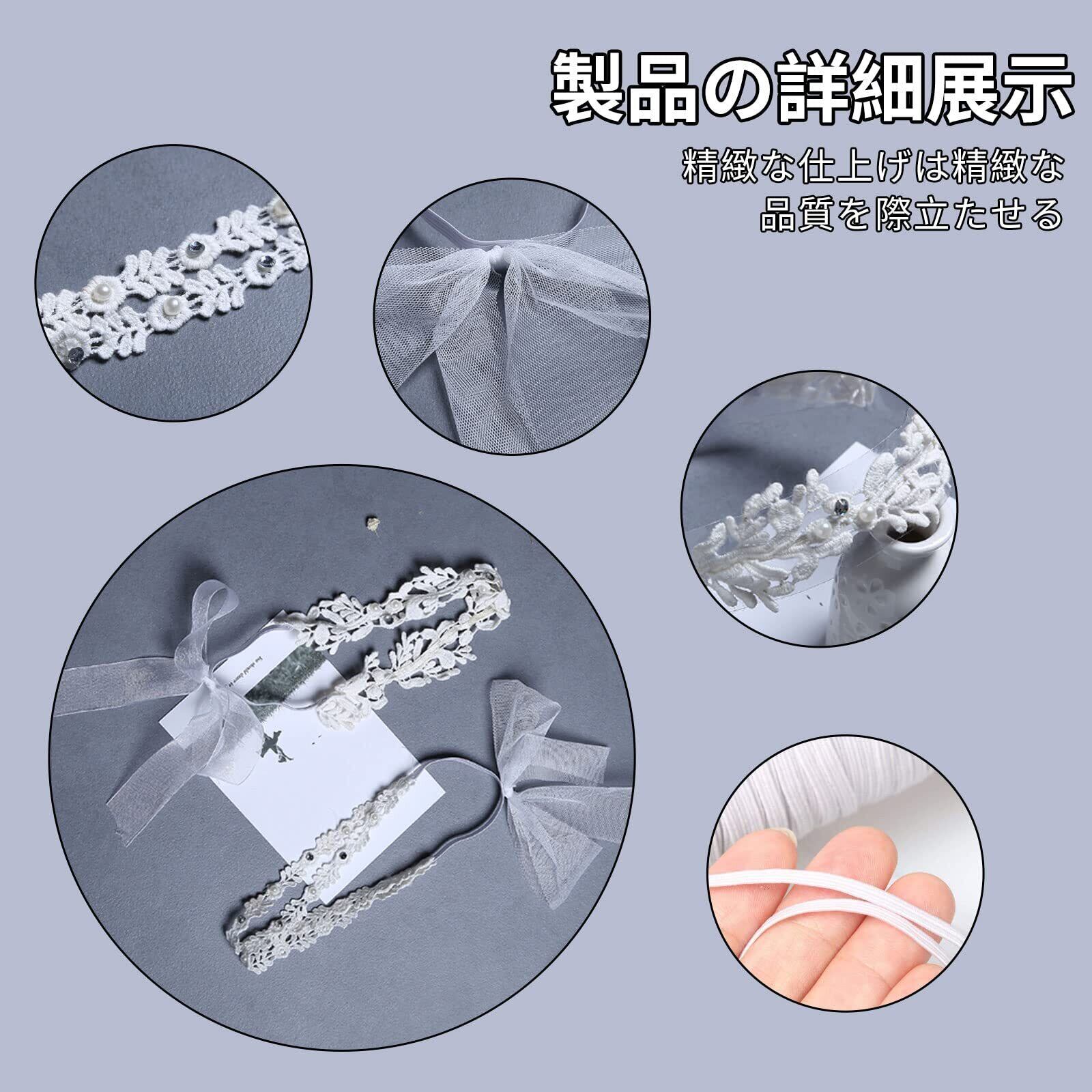nalaina ヘアバンド ベビー ヘアアクセサリー(2点セット) ベビーカチューシャ 髪飾り 子供 女の子 ヘッドドレス レース 花 へあアクセサリー おしゃれ かわいい 出産祝い お祝い 誕生日 記念日 撮影 白
