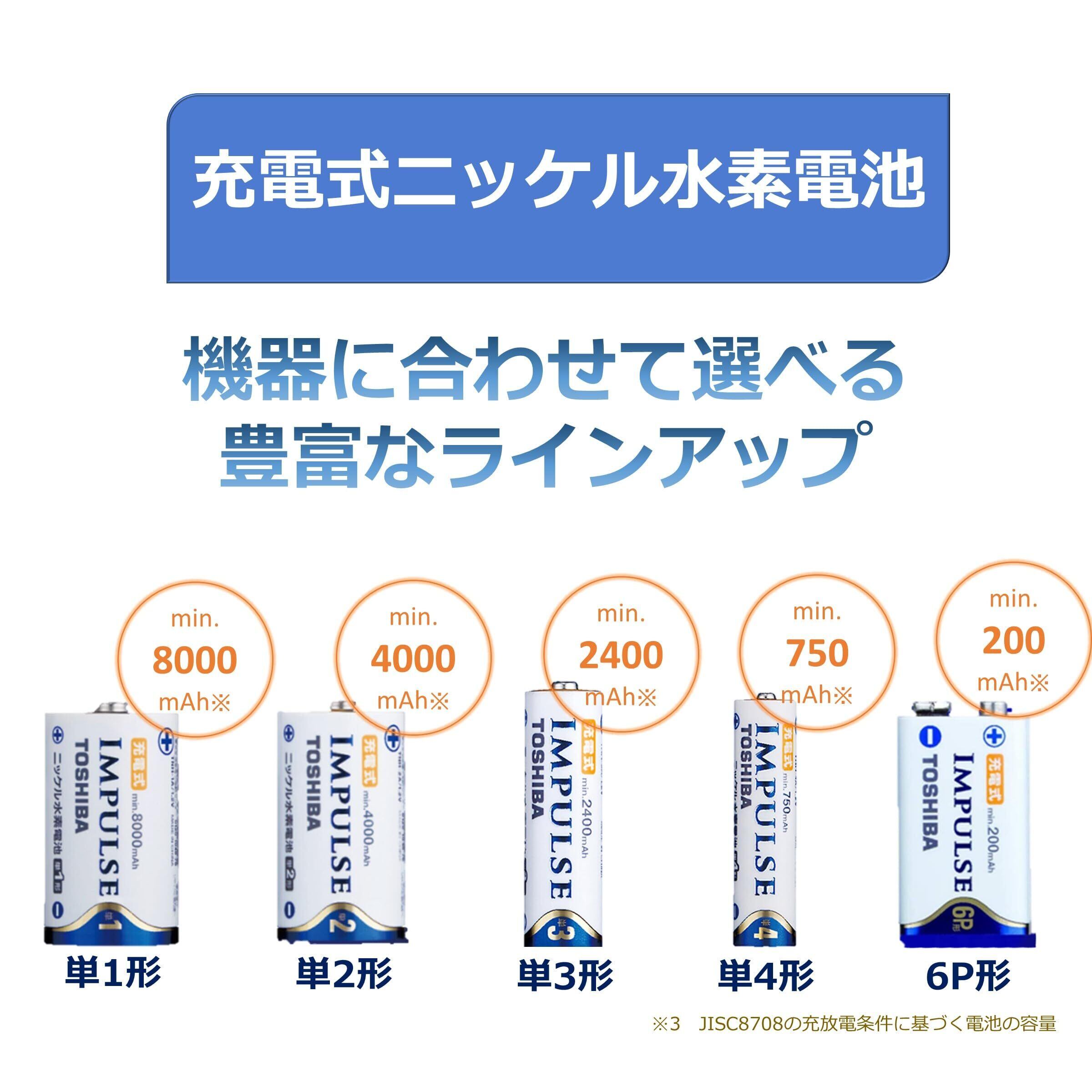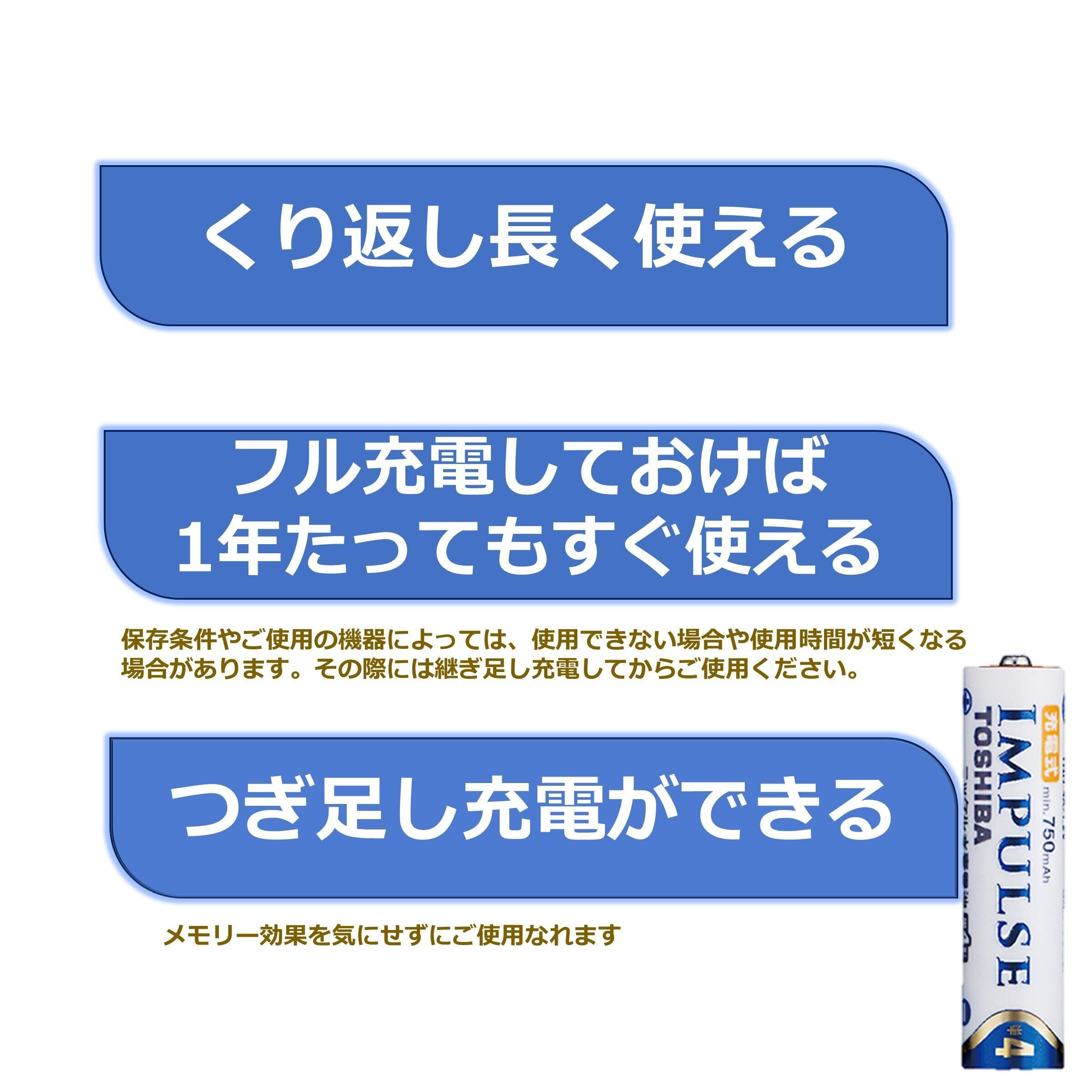 TOSHIBA ニッケル水素電池 充電式IMPULSE 単4形充電池(min.750mAh) 4本 TNH-4A 4P