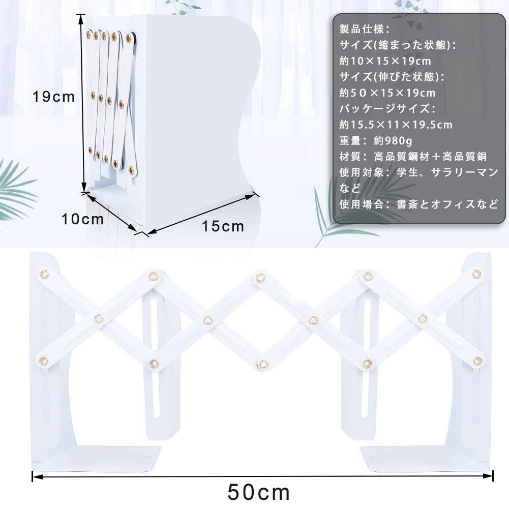 CANPEKI ブックスタンド 伸縮自在 オフィス 本立て 卓上収納 本/雑誌/書類入り ブックエンド 倒れない 仕切りスタンド 金属製 おしゃれ 整理用品 (ホワイト)