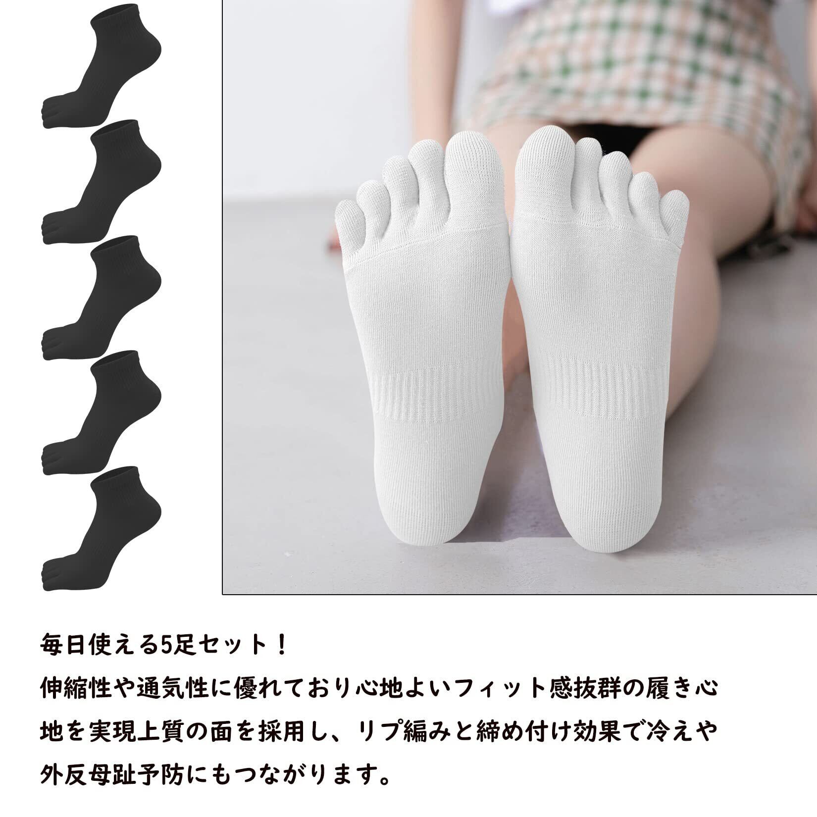 [XKAOPUTE] 五本指ソックス くるぶし丈 クルー丈 レディース 女性 スポーツ用 ランニングソックス ショート丈 綿 5本指 靴下 通気 頑丈 無臭 5足セット