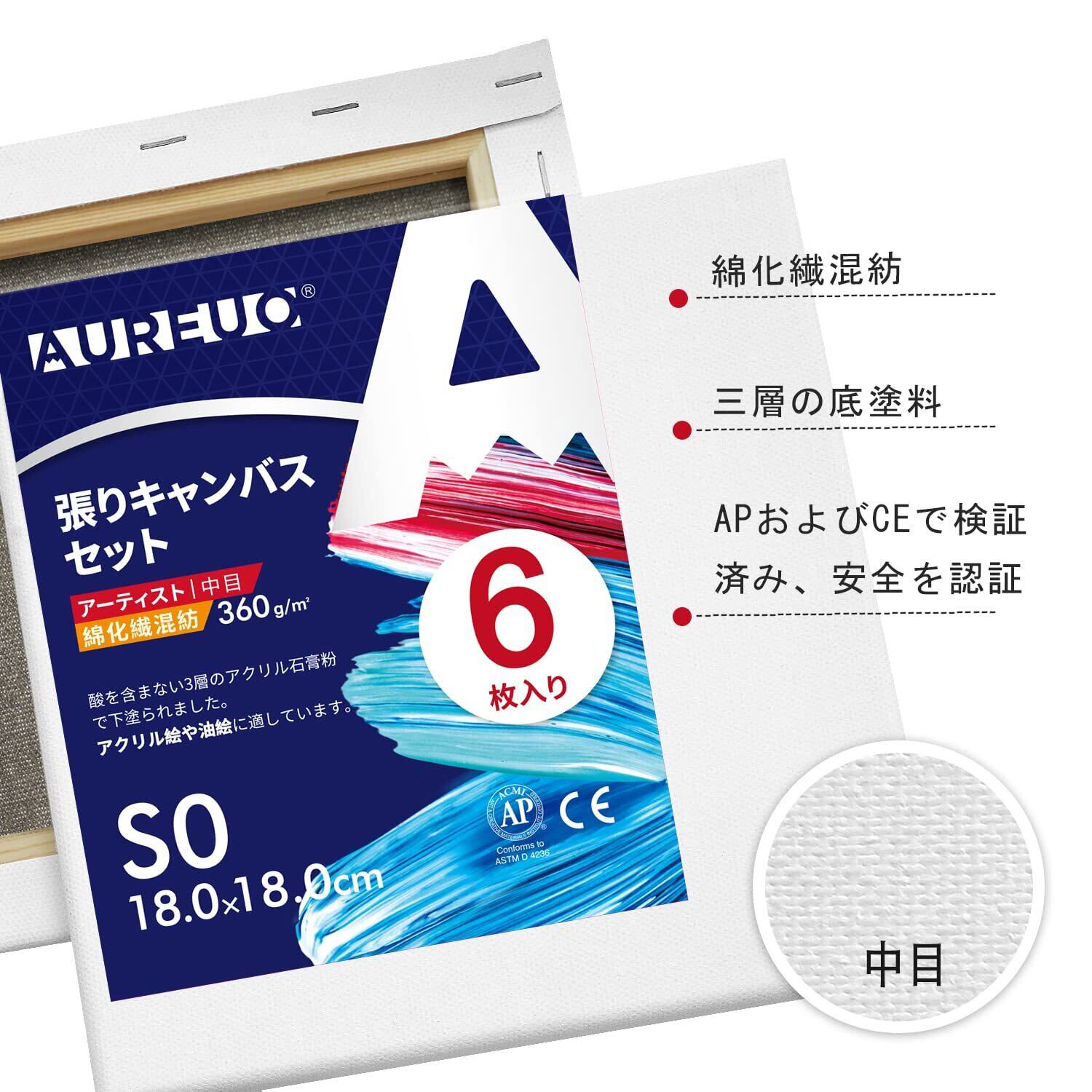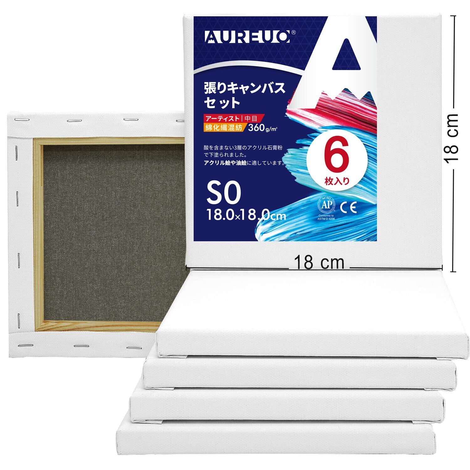 【新春セール】AUREUO 綿化繊混紡 張りキャンバス S0 (18.0cmX18.0cm) 6枚 - 中目布纹 水彩画・油絵画・アクリル兼用 - モダンアート・ポップアートに最適