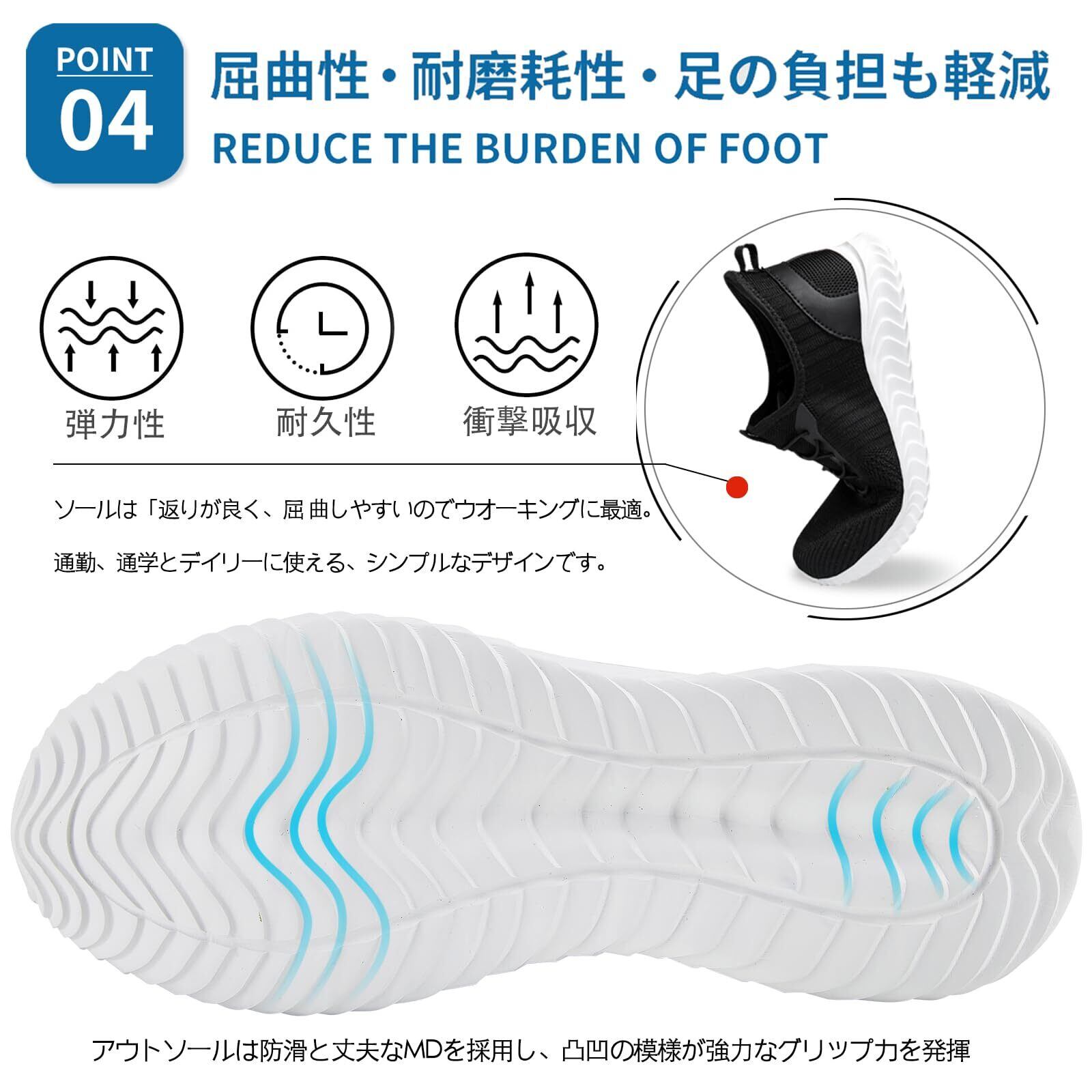 【卓越的なクッション性と雲のような快適さ】ミッドソールには厚手のEVAフォームを採用し、5層構造の衝撃吸収インソールと約3cmの高めアウトソールを組み合わせることで、より強力な衝撃緩和効果を実現。卓越的なクッション性と弾力性を提供します。シューズ本体は柔らかく柔軟で、足のカーブに完璧にフィット。一歩一歩が軽やかで楽な履き心地を実現します。ランニング、トレーニング、日常のウォーキングなど、あらゆるシーンで足への衝撃を効果的に吸収。外反母趾や幅広・甲高の方におすすめです!長時間の運動や立ち仕事(レジ係、医師、看護師、レジスタッフ、事務員、介護士、高齢者、通勤歩行者、レジャースポーツ者、营业员、看護師、教師など)にも最適で、一日中快適なサポートを提供します。スポーツシューズとしても、通勤シューズとしても、理想的な選択肢です。