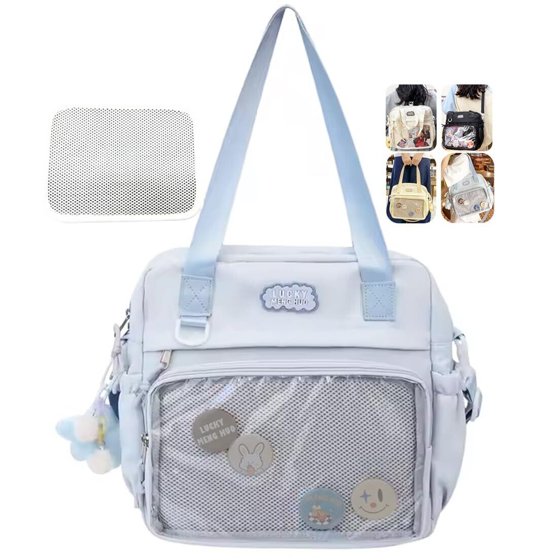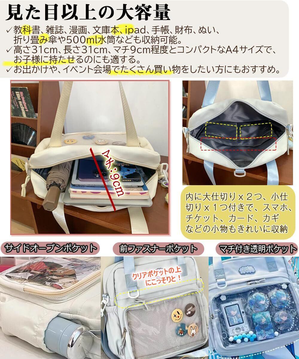 [NGELOM] 痛バッグ 痛バ 3way a4 軽量 ショルダー リュック ハンド 31x31cm 透明ポケット メッシュ生地付き かわいい ポリ製 おしゃれ 4色 はっ水 缶バッジ ぬいぐるみ 通学 推し 推し活 オタ活 学生 大人 女の子 推し活バッグ