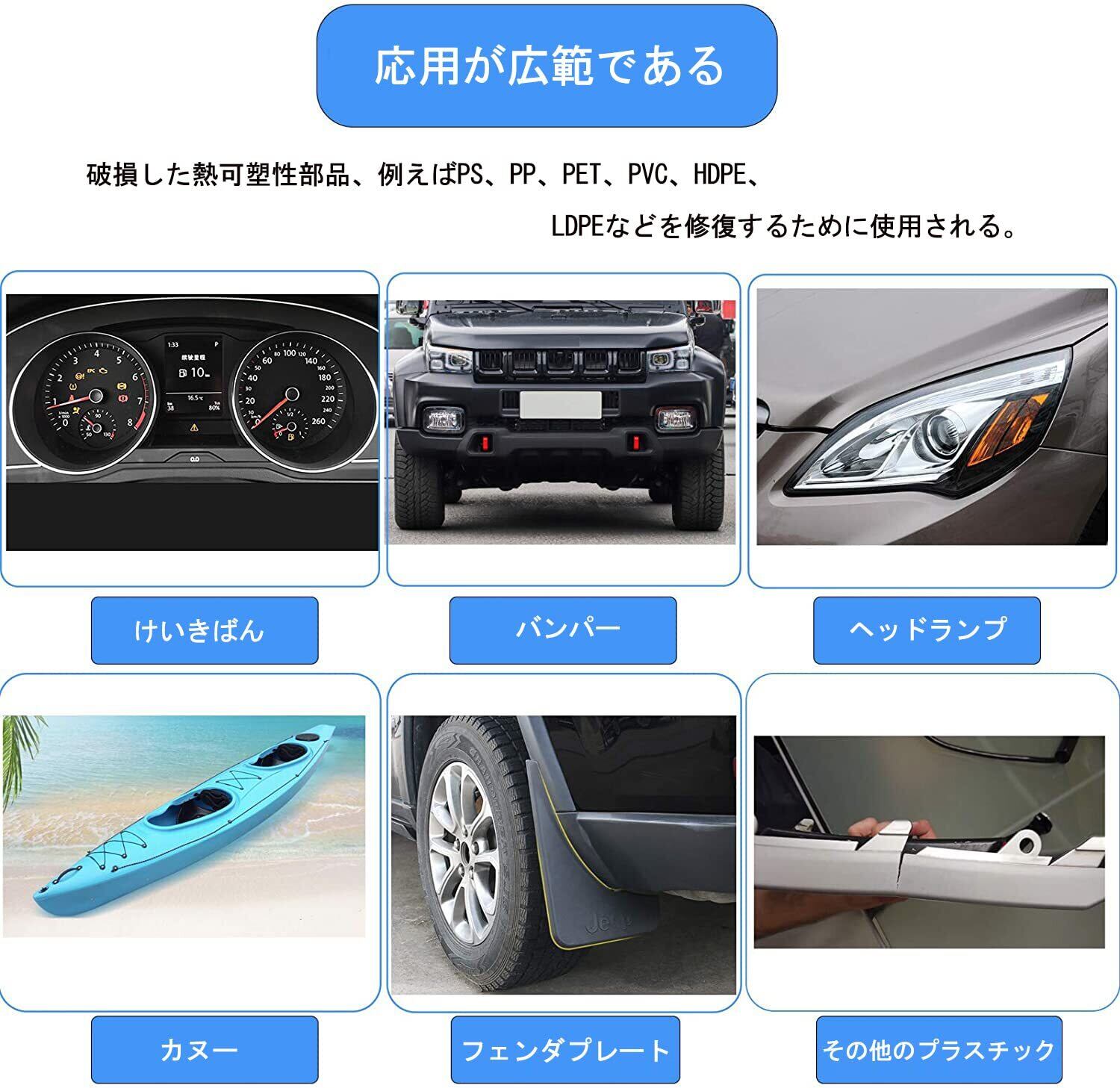 溶接キットは壊れたプラスチック部品を復旧することができます。例えば、バンパー、ダッシュボード、ランプのプラスチックリング、自働車とオートバイのプラスチック設備など、効率的でお金を節約して補修と補強します。コンバーターが不要で日本の家庭用電圧に直接接続できます。