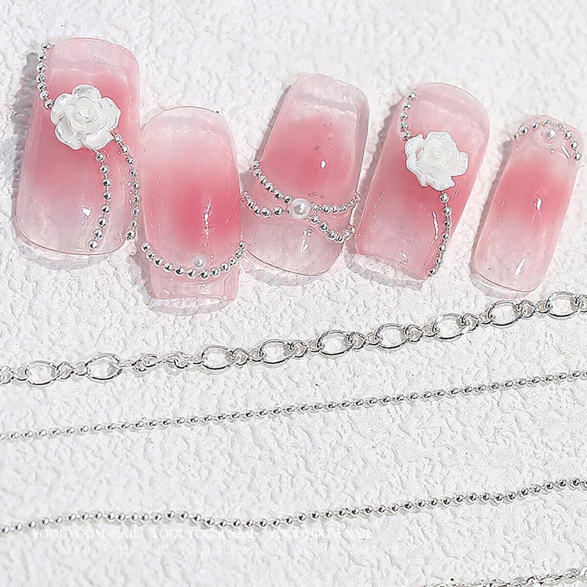 ネイルパーツ ネイル チェーン 4本入り 4種類 50cm 極細 ボールチェーン 裁断可能 0.8mm+1mm ネイルデコレーションパーツ ネイル ボールチェーン ネイルアート DIY 工芸品 ファッショ オーナメントン ネイルアート アクセサリー パーツ 手芸 ゴールド+シルバー