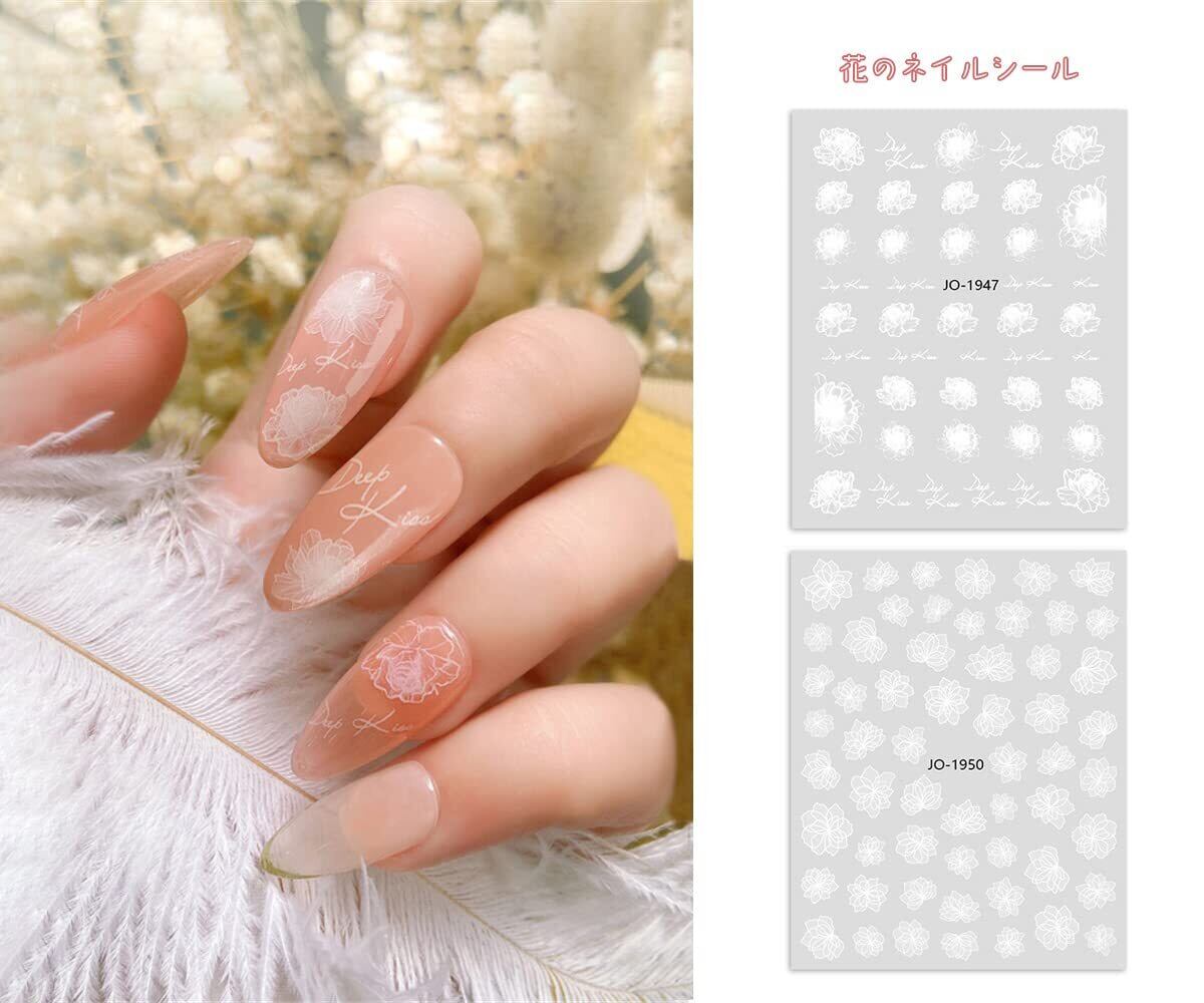 Sucodver ネイルシール 花 白 桜 花びら ホワイト ネイルステッカー フラワー 花柄 レース 半透明 6枚セット
