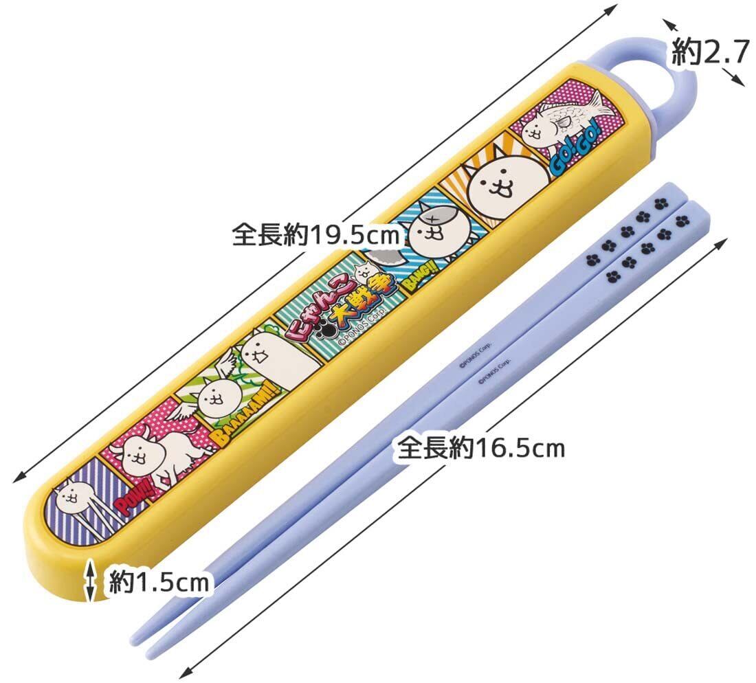 スケーター(Skater) 子供用 箸 箸箱セット 16.5cm お弁当用 抗菌加工 開けやすいスライド式 日本製 にゃんこ大戦争 23 ABS2AMAG-A