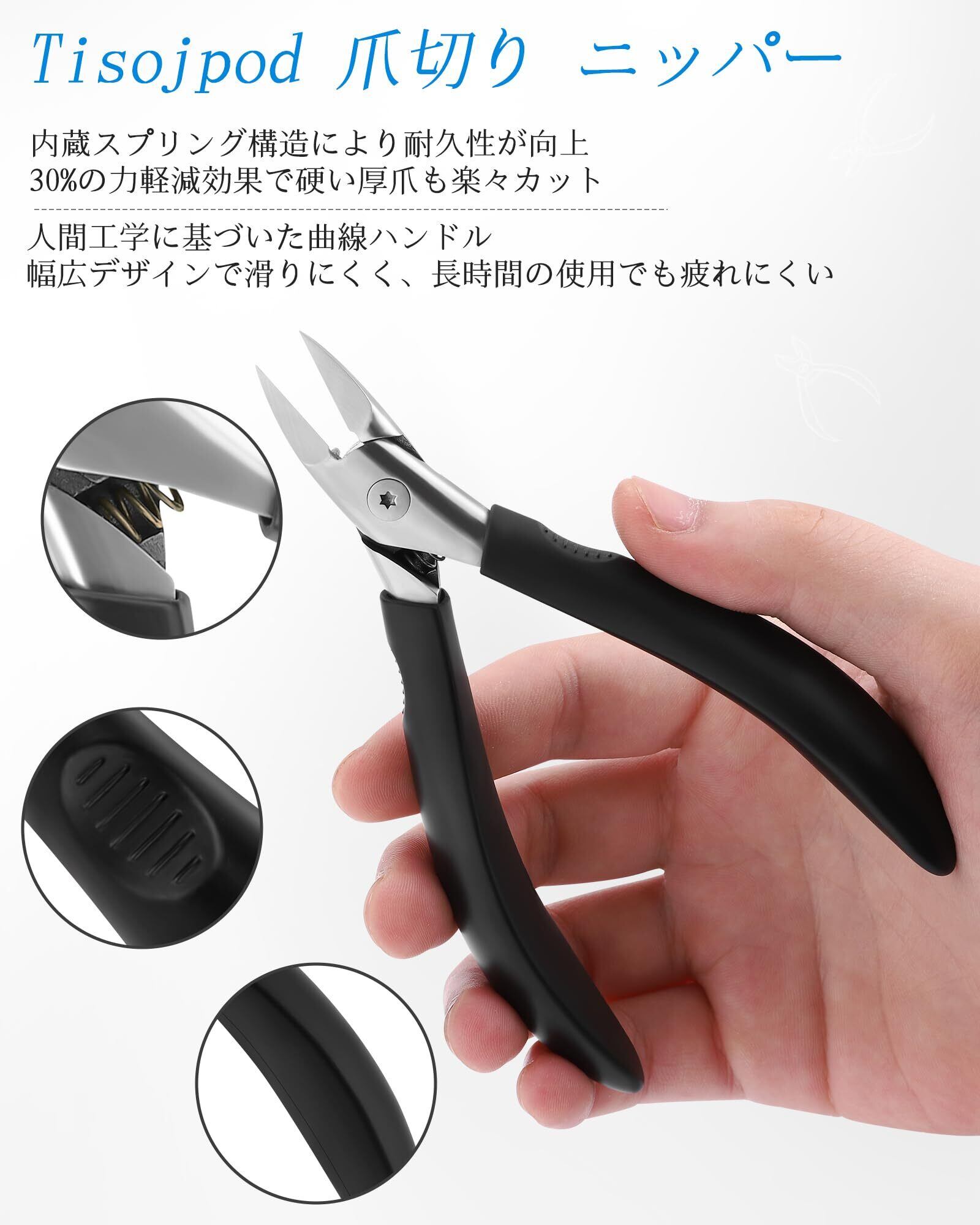 【在庫セール】Tisojpod 爪切り ニッパー 巻き爪用爪切り ダブルV型 つめきり 鋭い切れ味 ステンレス刃 整えやすい 精密 手足両用 高齢者 人気 ギフト 革製ケース付 男女兼用 黒 | allstore3