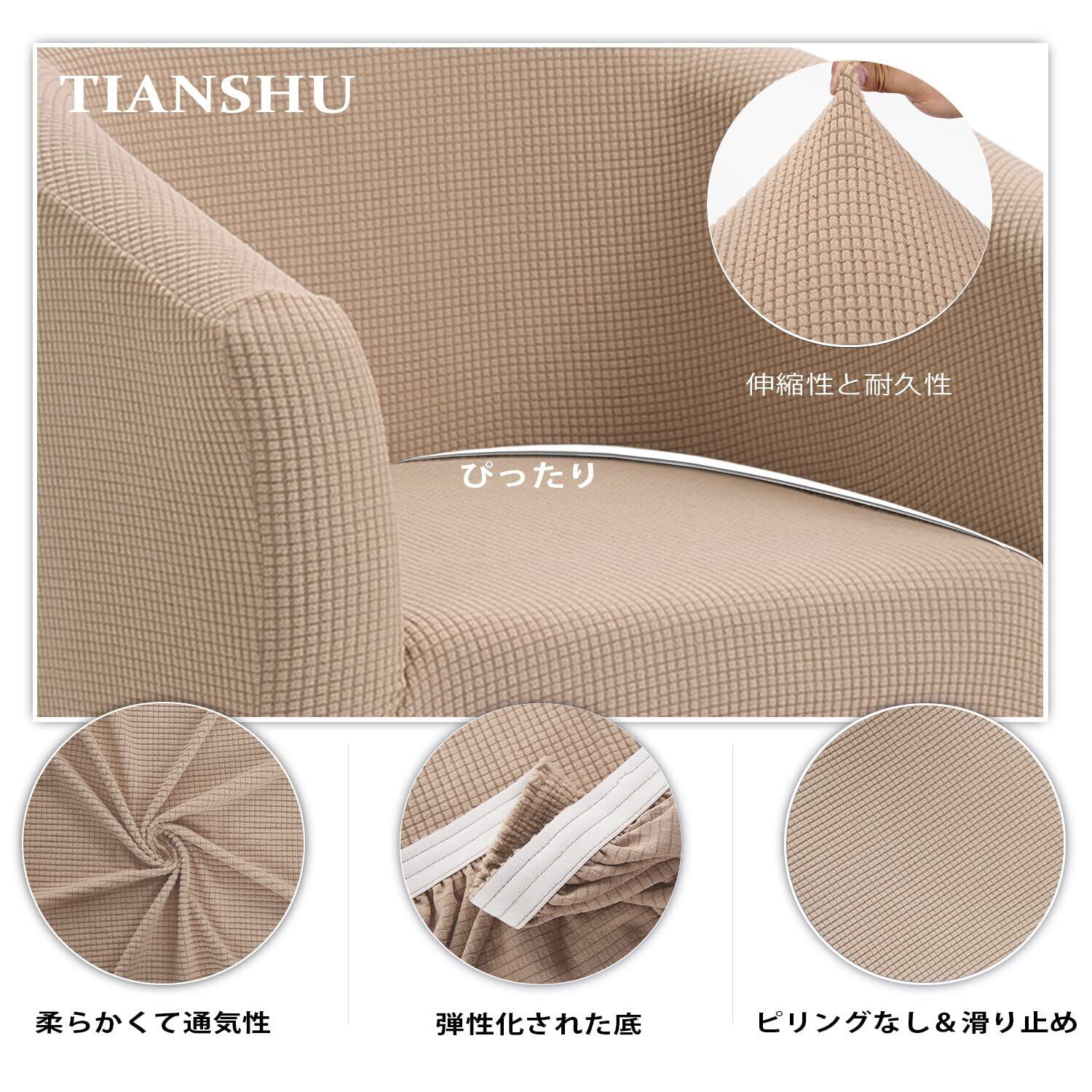 TIANSHU ソファーカバー 1人掛け, 肘付き 一体型 きチェアカバー 無地 縦横弾力 ストレッチ フィットタイプ 滑り止め 柔らかい 伸縮素材伸び良く 四季適用 超便利 (チェック柄ポリエステル生地, ライトブラウン)