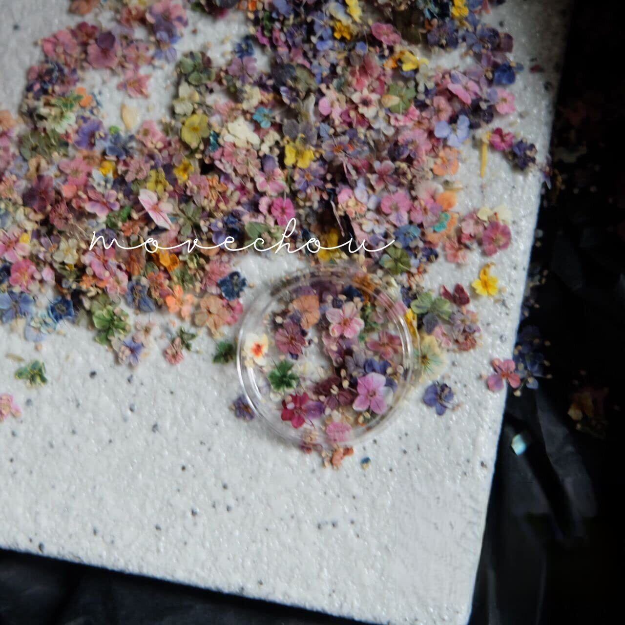 48枚入り手作りミニ押し花ドライフラワー小さめ繊細で に可愛いお色mixカラフルDIYネイル用レジン封入オリジナル素材アクセサリー製作