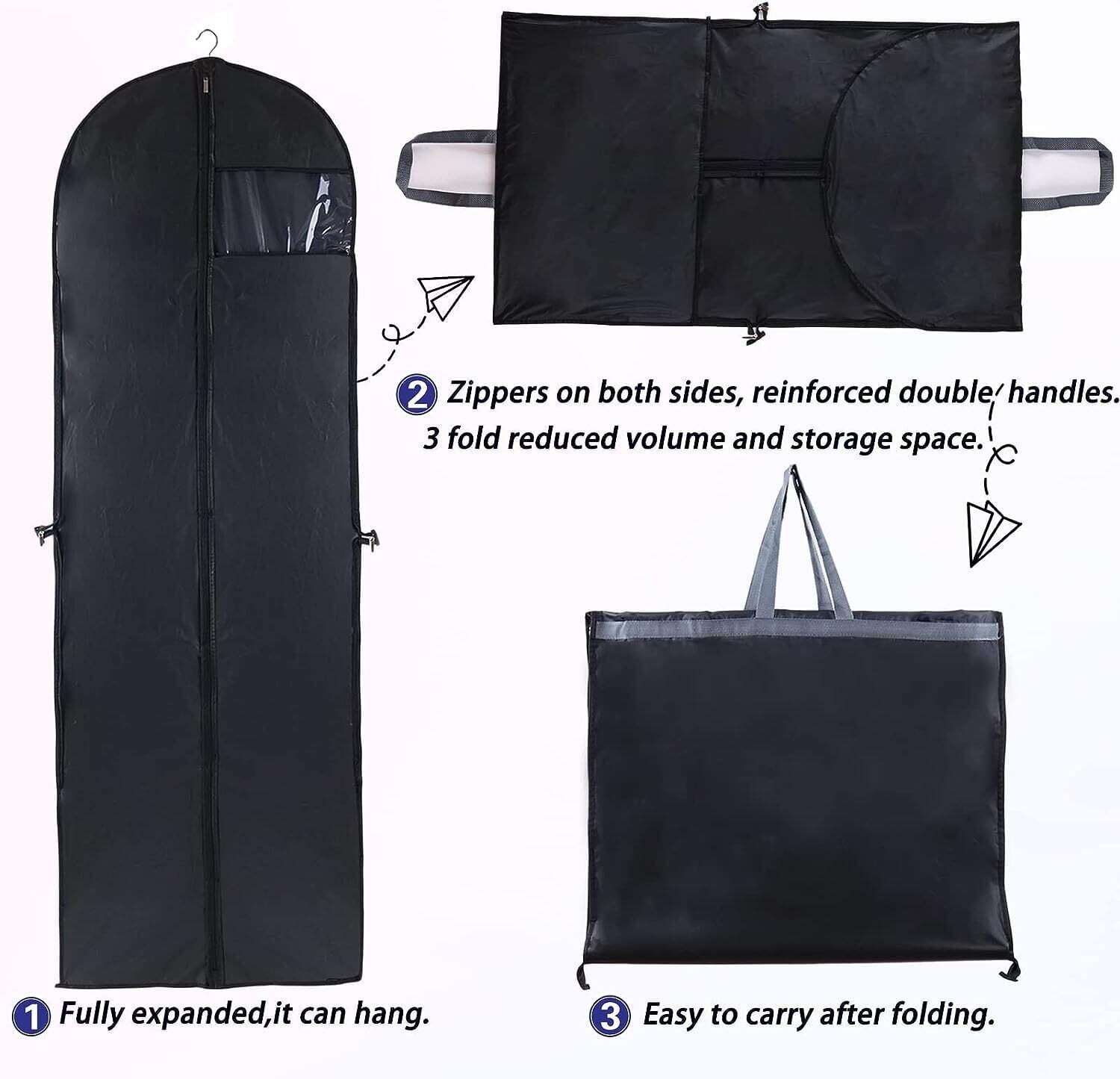 【広い用途】ブライドメイドドレス、ロングコスチューム、タキシード、フォーマルガウン、ふくらんでいるスカート、ボールガウンのウェディングドレス、マーメイドドレスの収納に使用するロングガーメントバッグ。
