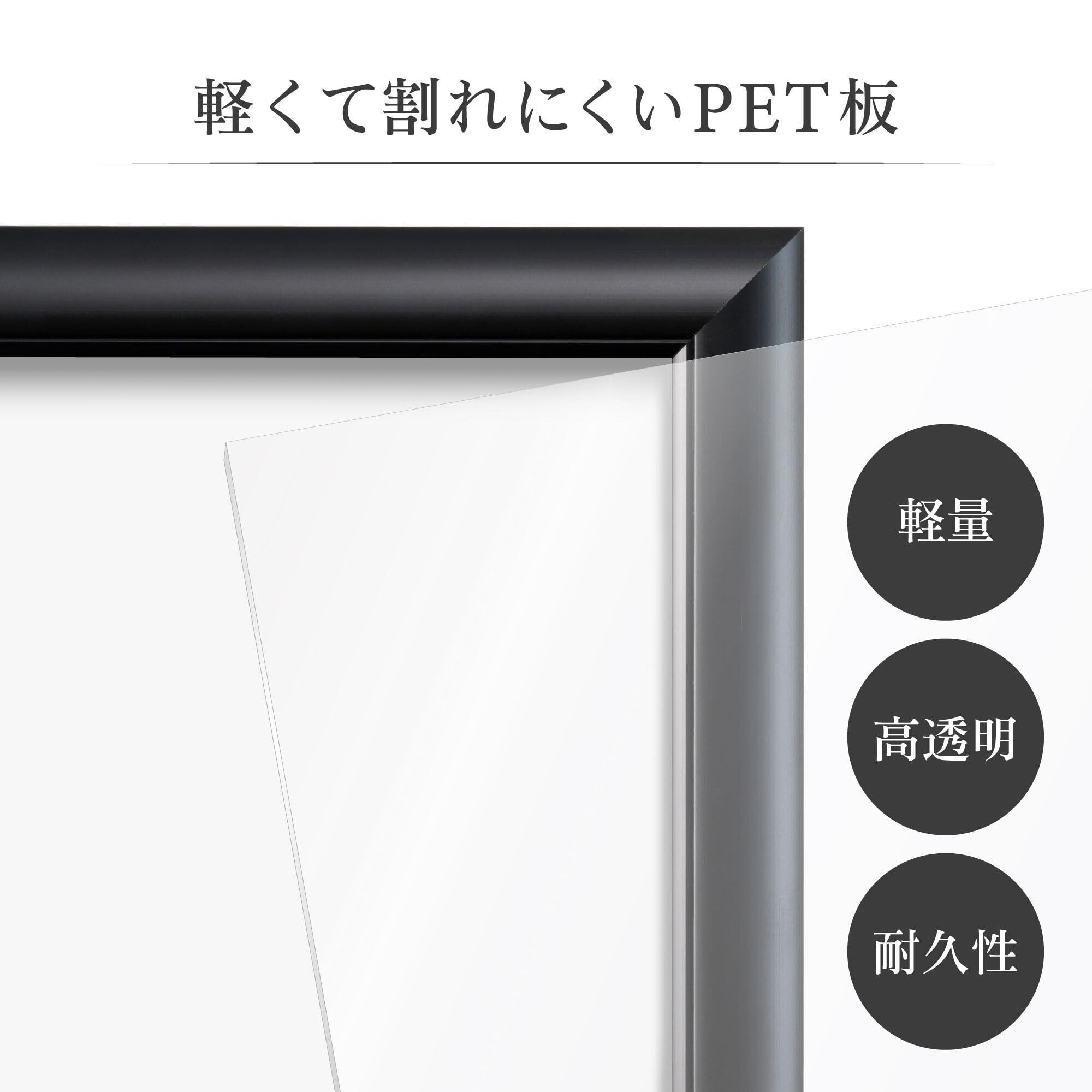 前面板にはPET板を使用、万一の落下時にも割れにくい軽くて安心の額縁です。