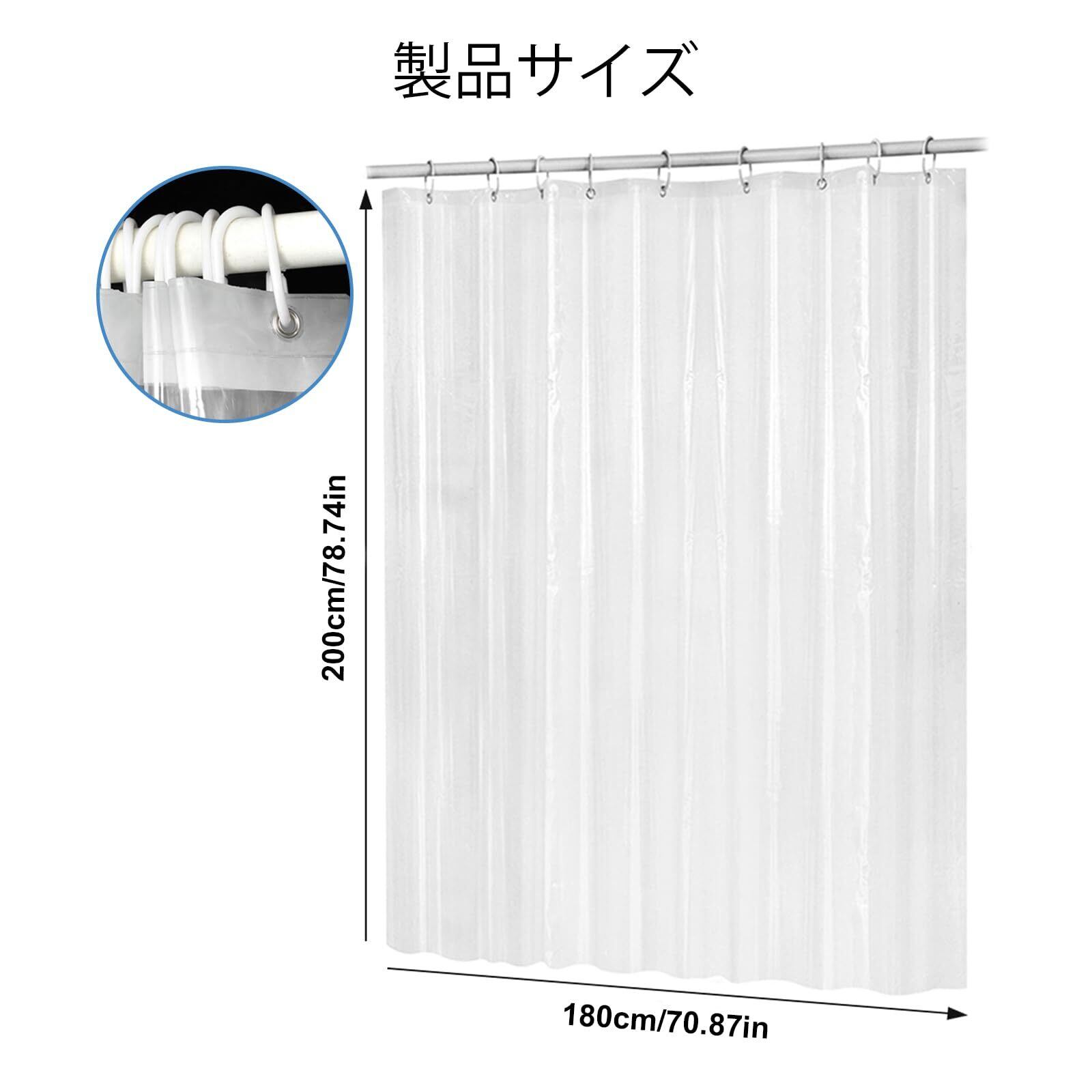 シャワーカーテン 透明 シャワーカーテンライナー エクストラロング PEVAプラスチック シャワーライナー 重みのあるストーン3個と防錆メタルグロメット12個付き 軽量 防水シャワーカーテン防水 防カビ 浴室カーテン バスルーム ユニットバスカーテン カーテンリング付属 間仕切り バスタブ 軽量 速乾 お風呂場 フック付き (180 * 200cm)
